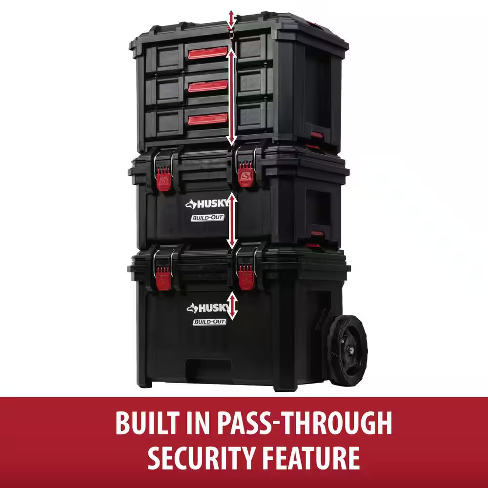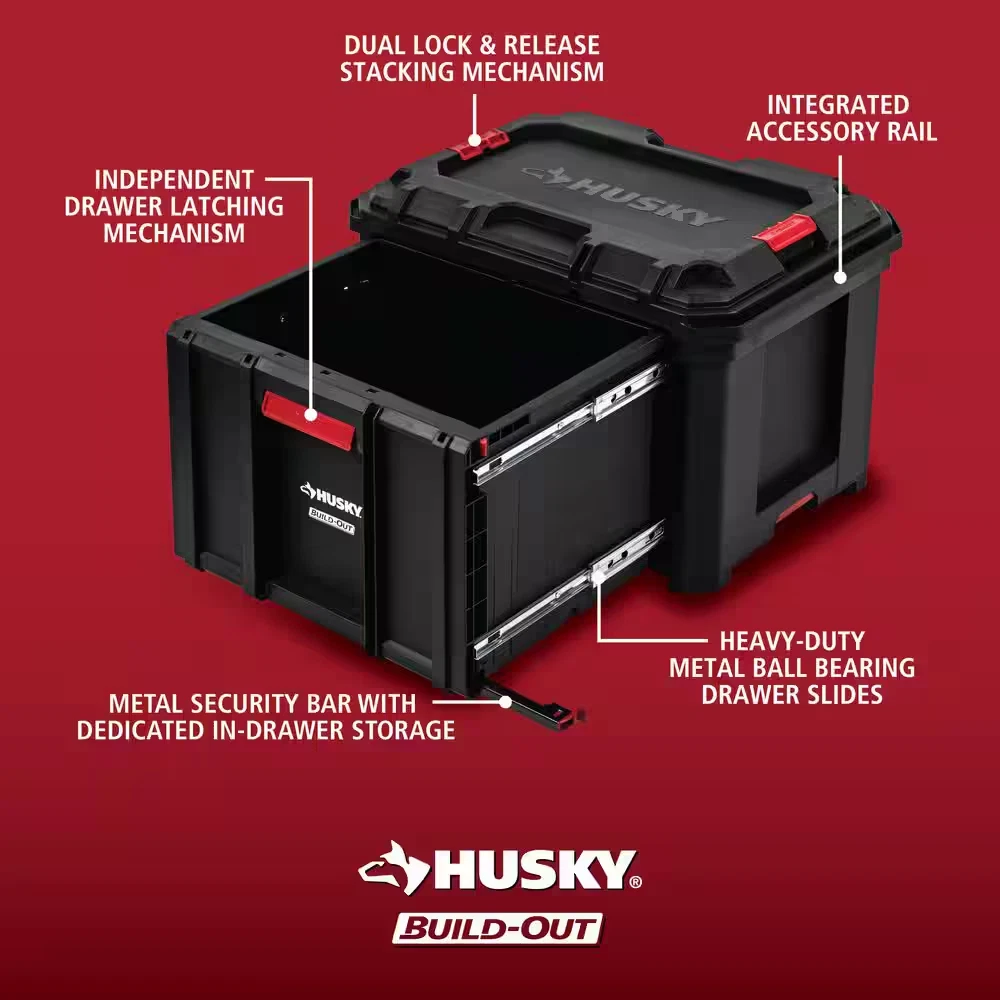 Fast Shipping On All Items 30 Days Money Guarantee Customer Support Excellent Service 100% Satisfaction Satisfaction Guaranteed Build-Out 22 In. Deep Drawer Tool Box Specification Color Family Black Color/Finish Black Features Deep Drawer,Lockable Holding Capacity (cu in) 1983 cu in Included Accessories Drawers Material Plastic Modular Storage Type Medium Box Modular System Type Husky Build-Out Product Weight (lb) 19 lb Returnable 90-Day Tool Box Type Modular Tool Box Tool Storage Product Type Modular Tool Box Tools Product Type Tool Storage Weight Capacity (lb) 50 lb Maximum Handle Length (in) 0 in Product Depth (in) 15.8 in Product Height (in) 16 in Product Width (in) 22.44 in 22.44 inches x 15.8 inches x 16.0 inches. Weight: 19.0 lb Item Description Open interior drawer for large component storage Flat top work area Backside accessory rail The Husky Build-Out Deep Drawer Tool Box is engineered for quick front access to oversized tools. This tool box has a large, open drawer without dividers. The drawer has an independent latching mechanism to stop unwanted opening during transport. With heavy-duty metal ball bearing slides and impact-resistant construction, this drawer features a total loading capacity of 50 lbs. The built-in pass-through security feature with included metal security bar ensure your tools stay safe and secure. Expand your storage system by connecting hooks and other accessories to the integrated accessory rail. The Husky Build-Out system creates customizable modular storage that gets you and your tools to the job site faster. The system includes tool boxes, organizers, crates and accessories, all designed to seamlessly secure together in many different configurations. About us We offer the best prices around on high quality products. Our E-store includes media such as books, movies, music and games while offering electronics, toys, sporting apparel, clothing, tools, general home, garden items and more. Shipping We are always working hard to ensure your package arrives as soon as possible. Please understand that some factors like weather, high postal traffic, and the performance of shipping companies are outside of our control. We offer free shipping to the lower 48 states and ship within 2-3 business days of payment, usually sooner. We do not accept P.O. Boxes. Please provide a physical address. For shipping outside of the continental USA, we only use eBay's Global Shipping Program.The item is shipped to KY and then sent to the rest of the world. International customers are responsible for all duties and taxes. Continue to check out to calculate costs for shipping the item to your country. Messages regarding eBay's Global Shipping Program MUST be directed at eBay EXCLUSIVELY. Returns We offer a 30-Day Return Policy on items in which you are not completely satisfied with. You have the option of a full-refund or an exchange of the item. No returns are available on items shipped outside of the USA Satisfaction We try over very best to make sure every customer is completely satisfied. If there's a problem, message us! We're happy to help. Payment Options Shop With Confidence