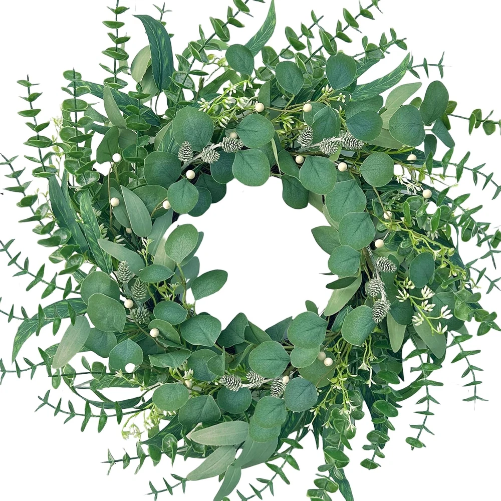 22-Inch Spring Summer Wreath with Eucalyptus Leaves & Berries for Door Decor