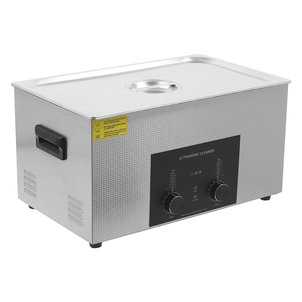 Specifications Color: Silver Style: Modern Shape: Rectangular Material: 304 Stainless Steel, 201 Stainless Steel Mount Type: Countertop Assembly Required: Yes Plug Type: US Standard Power Supply: AC100-120V, 60Hz Ultrasonic Frequency: 40Khz Ultrasonic Power: 480W Heating Power: 500W Power Cord Length: 1.5m/4.92ft Temperature Range: 15-80℃/59-176℉ Time Setting Range: 1-60min Inner Capacity: 22L/5.81Gal Effective Capacity: 17.5L/4.62Gal Drain Valve Diameter: 1/2" Product Inner Size: 50*30*15cm/19.69*11.81*5.9in Cleaning Basket Size: 46.5*26.5*8.7cm/18.3*10.43*3.43in Packaging Size: 66*42*35.5cm/25.98*16.54*13.98in Gross Weight: 12.47kg/27.49lbs Net Weight: 10.4kg/22.93lbs Package Included 1* Ultrasonic Cleaning Machine 1* Cleaning Basket 1* Power Cord 1* English Specifications Color: Silver Style: Modern Shape: Rectangular Material: 304 Stainless Steel, 201 Stainless Steel Mount Type: Countertop Assembly Required: Yes Plug Type: US Standard Power Supply: AC100-120V, 60Hz Ultrasonic Frequency: 40Khz Ultrasonic Power: 480W Heating Power: 500W Power Cord Length: 1.5m/4.92ft Temperature Range: 15-80℃/59-176℉ Time Setting Range: 1-60min Inner Capacity: 22L/5.81Gal Effective Capacity: 17.5L/4.62Gal Drain Valve Diameter: 1/2" Product Inner Size: 50*30*15cm/19.69*11.81*5.9in Cleaning Basket Size: 46.5*26.5*8.7cm/18.3*10.43*3.43in Packaging Size: 66*42*35.5cm/25.98*16.54*13.98in Gross Weight: 12.47kg/27.49lbs Net Weight: 10.4kg/22.93lbs Package Included 1* Ultrasonic Cleaning Machine 1* Cleaning Basket 1* Power Cord 1* English Manual Description This ultrasonic cleaner's high-frequency ultrasonic waves can delve into microscopic crevices, breaking down grease and stains adhering to jewelry, spectacles, tableware, braces, and other miniature, intricate items. It features a knob-type timer and temperature control design for a simple operation that simplifies cleaning tasks, bringing technological convenience to your daily life. Key Features Quality and Reliability : The product is made of 304 stainless steel and 201 stainless steel, which is resistant to rust, corrosion, and deformation, giving the product a long service life and excellent working performance. Efficient Cleaning: Different from other cleaning technologies, 40Khz ultrasonic technology can remove dirt on the surface of objects, and penetrate blind holes, and cracks, thus thoroughly cleaning the dirt that cannot be cleaned by hand without damaging your belongings. Moreover, the degas mode can eliminate ultrasonic fatigue and improve cleaning results. Adjustable Design: The product comes with knob-type temperature (59-176℉) and time control (1-60min) to meet the cleaning needs of different objects. Large Capacity: The 4.62gal effective capacity and large cleaning basket (18.3*10.43*3.43 inches) can easily hold and clean most of your watches, jewelry, and more. Efficient Heat Dissipation: The heat dissipation windows and the powerful cooling fan can accelerate heat dissipation, reduce failure rate, and increase service life. Safety Guarantee: The product is equipped with a fuse, when the circuit is overloaded, it will automatically fuse to stop the power supply, avoiding damage to the machine and injury to you. Simple Operation: Equipped with an intuitive and user-friendly operational interface, this product simplifies activation and adjustment of cleaning time and temperature settings, making it accessible to you. Easy to Clean: The fingerprint-resistant stainless steel shell, simple structure, and smooth surface make it more convenient for daily cleaning. Details Cleaning Basket: It can reduce scratches during cleaning to better protect your valuables items, and can also be used to drip-dry items. Side Handles: They make it convenient to move the machine. Drain Valve: It allows you to drain standing water and cleaning fluids more easily. Top Lid: It can well seal the machine to reduce heat loss and noise. Meanwhile, the handle on the top allows you to easily pick up the lid. Sturdy Feet: They prevent the product from sliding and enhance stability during operation. Application It can be used in homes, laboratories, the jewelry industry, industry, electrical industry, hospitals, and more. It is specially used for cleaning jewelry, eyeglasses, watches, dentures, dental instruments, clocks and watches, motorcycle parts, automobile parts, bicycle parts, hardware, tools, engine parts, and more. Notes Please check the size carefully before ordering. Please note that the heating is turned on when the preset temperature is higher than the actual temperature. Please note that the ultrasonic cleaning process can also slowly heat the cleaning liquid, so the temperature of the cleaning liquid is likely to be higher than the preset temperature. 304 stainless steel material makes the device resistant to weak acids and weak alkalis. However, please don't use strong acids or strong alkali. Please do not place items directly on the bottom of the cleaning tank and please put items into the washing basket for cleaning. It needs to be filled with 2/3 of the water and please avoid dry-burning. Please read the operating manual and label completely before use. And pay particular attention to the safety instructions included. Please allow the slight color difference caused by the shooting light and 1-3cm error due to manual measurement, and make sure you do not mind before you order. Payment Delivery details Terms of sales About us Contact us Payment We accept ebay payment 。 Fees such as import duties, taxes are not included in the item price or shipping costs. These charges are the buyer's responsibility. Delivery details Shipping: 2-9 working days to: USA Terms of sales We maintain high standards of excellence and strive for hundred percent customer satisfaction. Feedback is very important to us. We hope that you contact us immediately before you give neutral or negative feedback, so that we can address your concerns. It is impossible to address i