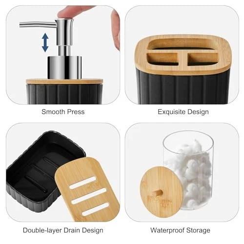 $ 22.866-Piece Black Bathroom Set with Toothbrush Holder, Cup, and Soap Dispenser