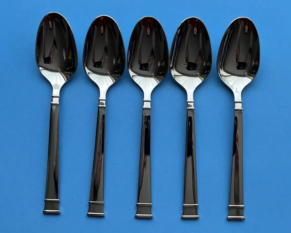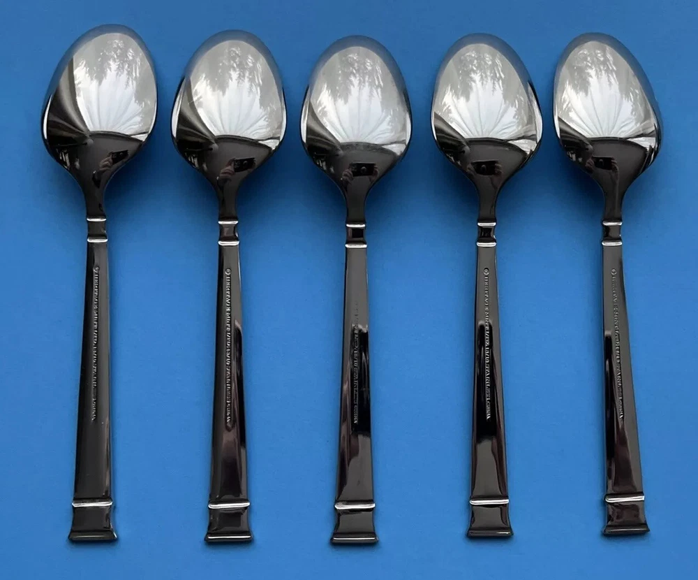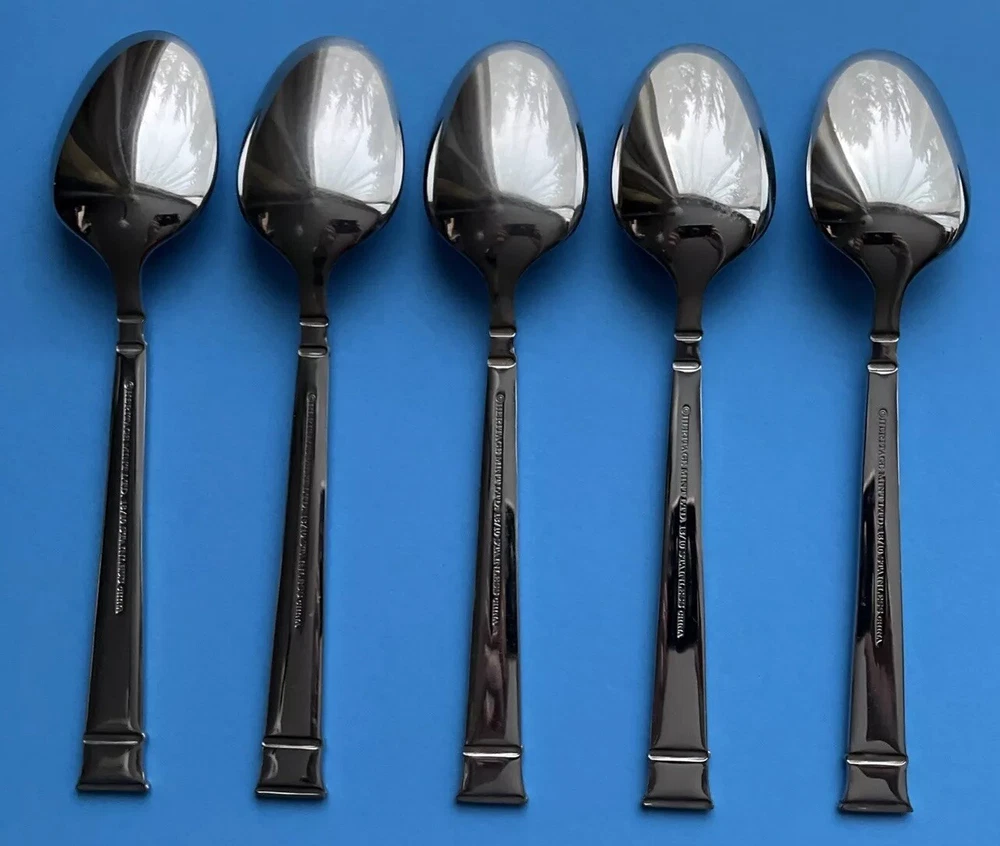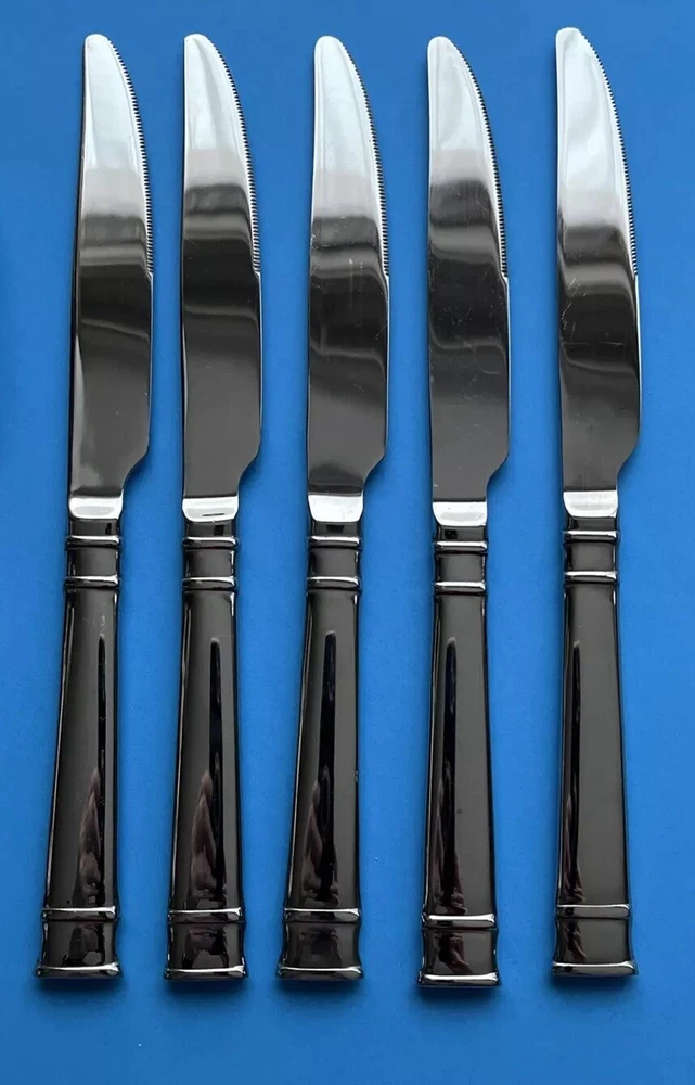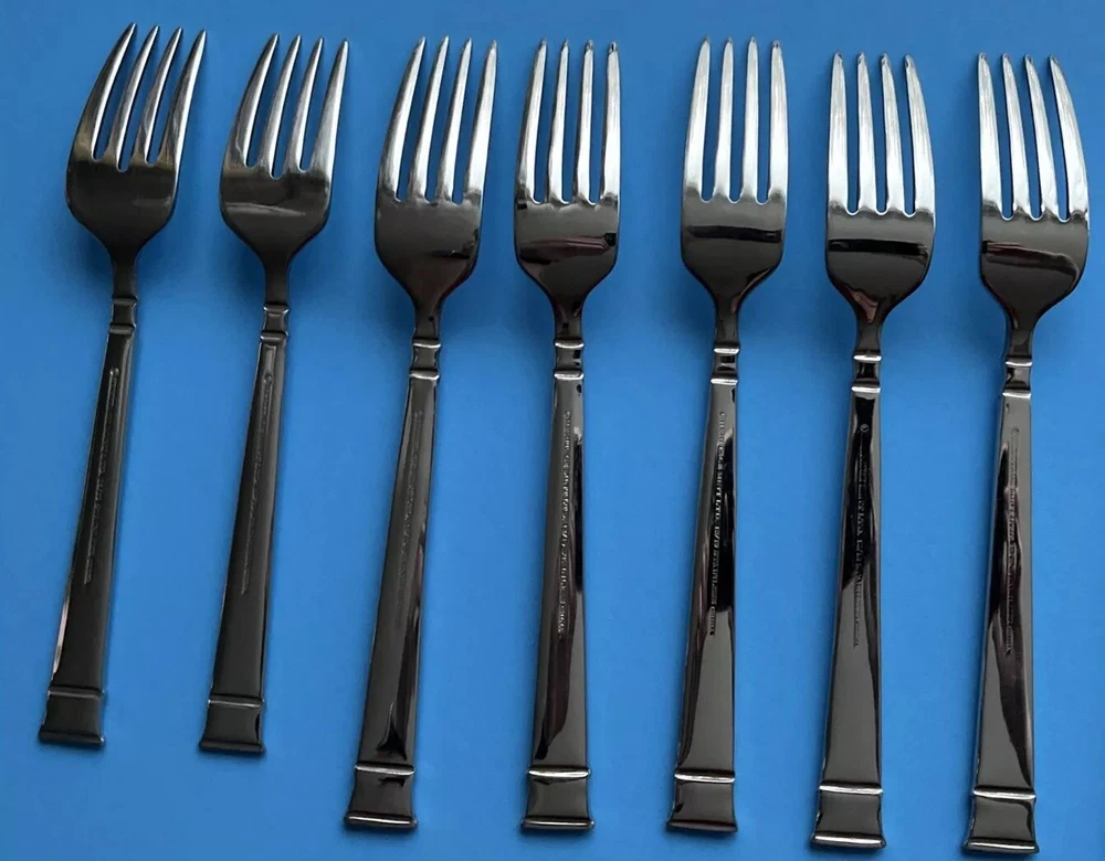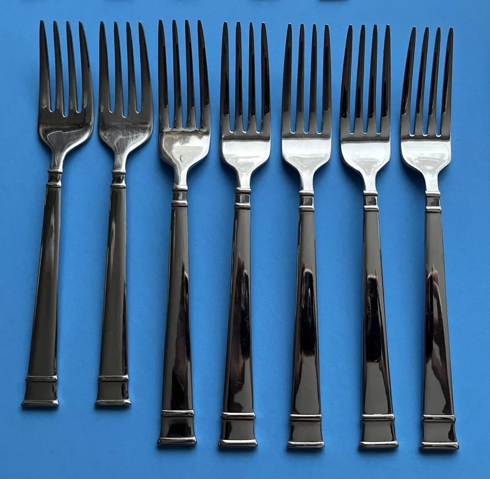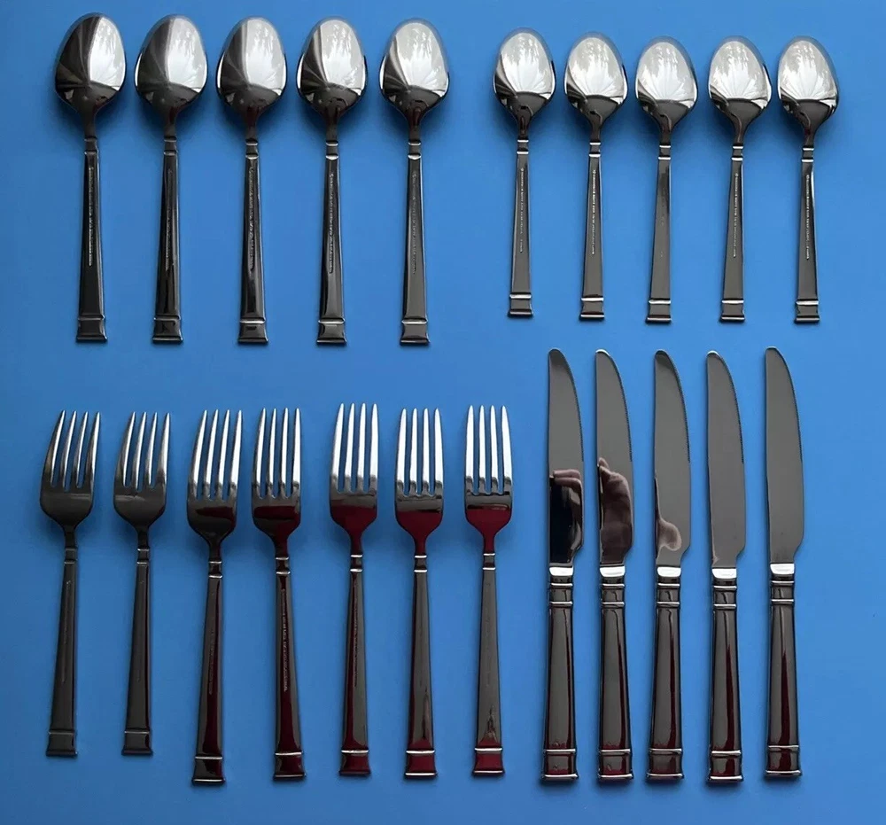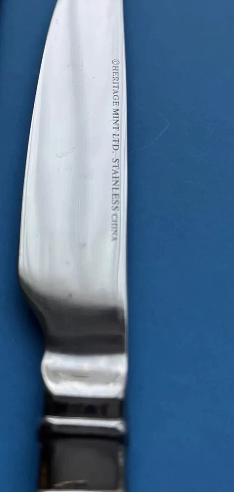 Lot of 22 Bentley by Heritage Mint. Lot includes: 5 dinner forks 7 3/4” 2 salad forks 7” 5 dinner knives 9 1/8” 5 teaspoons 6 3/8” 5 place/oval soup spoons 7” In good condition with no cracks or disposal damage. Scratches consistent with pre owned use. Please see photos.