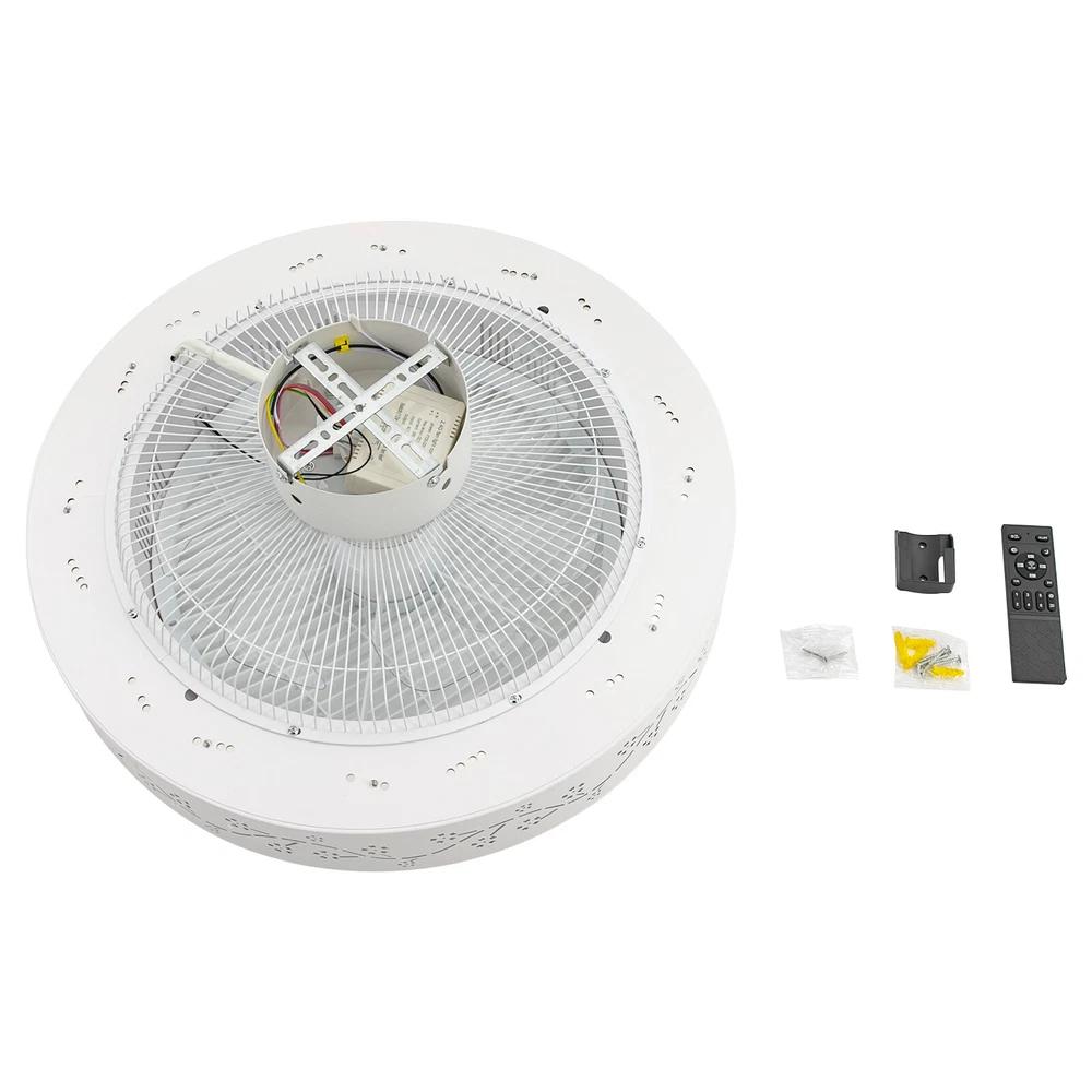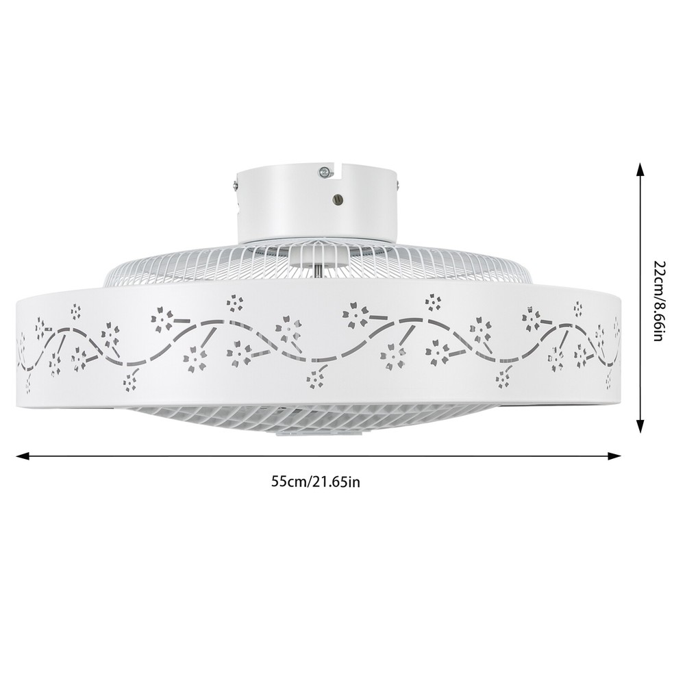 22" Ultra-thin LED Ceiling Fan Light Remote Control Flush Mount Ceiling Fan Lamp Description This ceiling fan light will bring a cool breeze and soft light to your home, making your room more cozy and warm. It comes with six wind speeds, which can bring you a comfortable and controllable wind. The infinitely dimmable function meets your different lighting needs. The remote and App control methods provide you with a high-quality and convenient life. Key Features Build to Last: Made of high-quality iron, ABS, and PVC materials with the matt paint process, this product is resistant to corrosion, rust, and abrasion and has a long service life. Stylish Appearance: The round lampshade with flower patterns brings this product a beautiful appearance, and such an eye-catching outlook will add a touch of elegance to your room and show your good taste to your guests. Dimmable Light: The product comes with three color temperature adjustments (3000K, 4200K, 6500K) and step-less control of the light brightness, which can create the atmosphere you need. Excellent Fan Performance: The product comes with an air guide wheel function to spread the wind evenly throughout the room. In addition, you can adjust the six wind speeds and the reversible function to meet your needs. Thoughtful Design: The 2-hour timer function allows you to fall asleep with a cool breeze. The memory function adds even more convenience by saving you the time of setting the ceiling fan light each time you turn it on. Smart Control: The product allows you to easily control and adjust the fan and light modes via remote control and APP, adding to your life extra convenience. High Safety: The fan blades are hidden inside a round cover, which can avoid accidents caused by getting caught in the blades, making it much safer than traditional fans. Easy to Clean: The smooth surface and simple structure allow you to remove the dust on the surface of this light with a towel. Ideal Gift: With practical function and a beautiful appearance, it can be an ideal housewarming gift for your friends, families, and colleagues. Details Copper Motor: The copper motor is sturdy and durable, and will provide the fan with strong power and a low noise(about 40db) during running. Rounded Edges: The burr-free edges can effectively protect your hands and skin from being scratched during installation or cleaning. Application It is suitable for rooms with 161.46-269ft² areas such as living rooms, bedrooms, kitchens, dining rooms, entrances, hallways, foyers, doorways, basements, restaurants, cafes, stores, children's rooms, and nurseries. Specifications Color: White Material: Iron, ABS, PVC Process: Matt Paint Motor Type: Copper Motor Mount Type: Ceiling Mounted Light Source: COB Voltage: 110V Efficiency: E Fan Speed Gears: 6 Time Setting: 2H Motor Power: 15W Motor Speed: 950rpm Noise: About 40dB Brightness Adjustable Range: 60LM Three Adjustable Color Temperature: 3000K, 4200K, 6500K Illumination Area: 15-25㎡/161.46-269ft² Suitable Room Height: 2.6m/8.53ft Battery Type: 2*AAA Batteries(Not Included) Remote Control Distance: 5-10m/16.4-32.8ft Product Size(D*H): 55*22cm/21.65*8.66inch Packaging Size: 52*52*25cm/20.47*20.47*9.84inch Gross Weight: 4kg/8.82lbs Net Weight: 3kg/6.61 Package Included 1*Ceiling Fan Light 1*Remote Control Other Accessories for Installation Notes Please check the size carefully before ordering. The remote control does not include batteries, so you need to prepare 2 AAA batteries yourself. For a safe and secure installation, please make sure that all wires are connected and all screws are tightened into the ceiling. When unpacking, be careful not to pull with the wires as a bad connection may result. Please do not turn on the power until fully assembled. Please conduct a power test before installation. We recommend installation by professionals. Please do not install it next to the air conditioner or heater, which will affect the service life of the product. Please wear electric insulation gloves (not included) and avoid scratching the surface of the product and the electric wire when installing. Please use this item within the applicable voltage range and clean it regularly. Please wipe with a soft cloth, it is not suitable to clean with cleaning agents. Please allow the slight color difference caused by the shooting light and 1-3cm error due to manual measurement, and make sure you do not mind before you order. Payment Delivery details Terms of sales About us Contact us Payment We accept ebay payment 。 Fees such as import duties, taxes are not included in the item price or shipping costs. These charges are the buyer's responsibility. Delivery details Shipping: 2-9 working days to: USA Terms of sales We maintain high standards of excellence and strive for hundred percent customer satisfaction. Feedback is very important to us. We hope that you contact us immediately before you give neutral or negative feedback, so that we can address your concerns. It is impossible to address issues if we do not know about them! About us Your satis faction is our ultimate goal. We work hard to earn your trust and future business. Our certified technicians have tested each item before shipping. The unit comes with 1 year limited warranty on all manufacturing defects. a) If you receive a defective item, you may return it or ask for a discount. Please contact us within 14 days after you receive the package. b) What you returned must be intact and in its original packaging as re? u. Customer is responsible for shipping costs of the returned item. c) We will cover the cost of shipping back t with the shipping rate indicated in the registration page. We will send you a new unit or refund the full payment you paid. Thank you. Contact us Business Hour Business Hour: Monday To Friday: 8:30 AM to 5:00 PM (Beijing China time) Due to time zones, our reply to your questions may not be immediately. But within above working time, we will reply your email within 24 ho