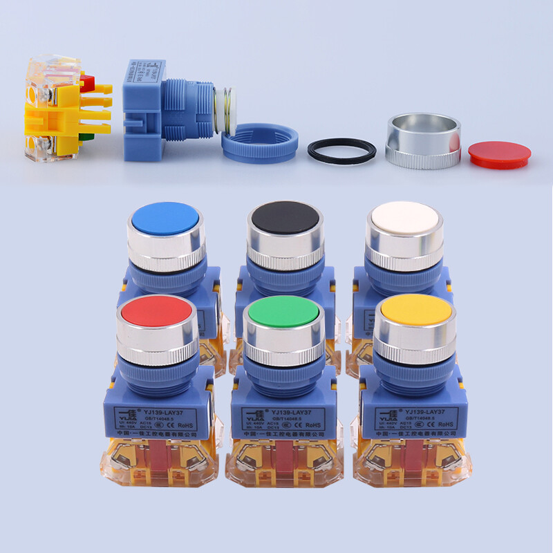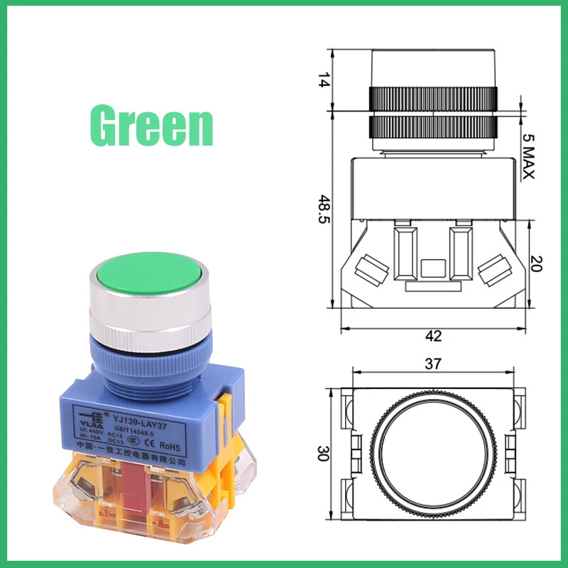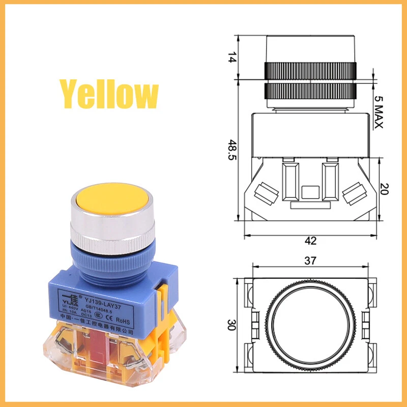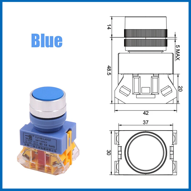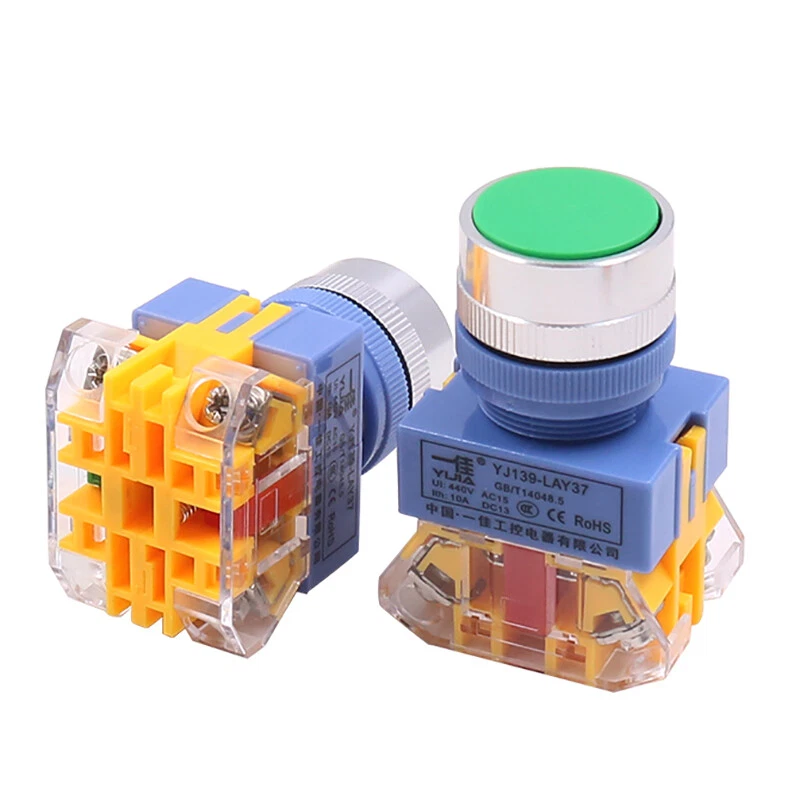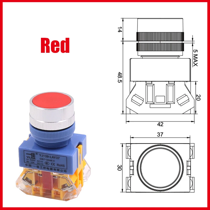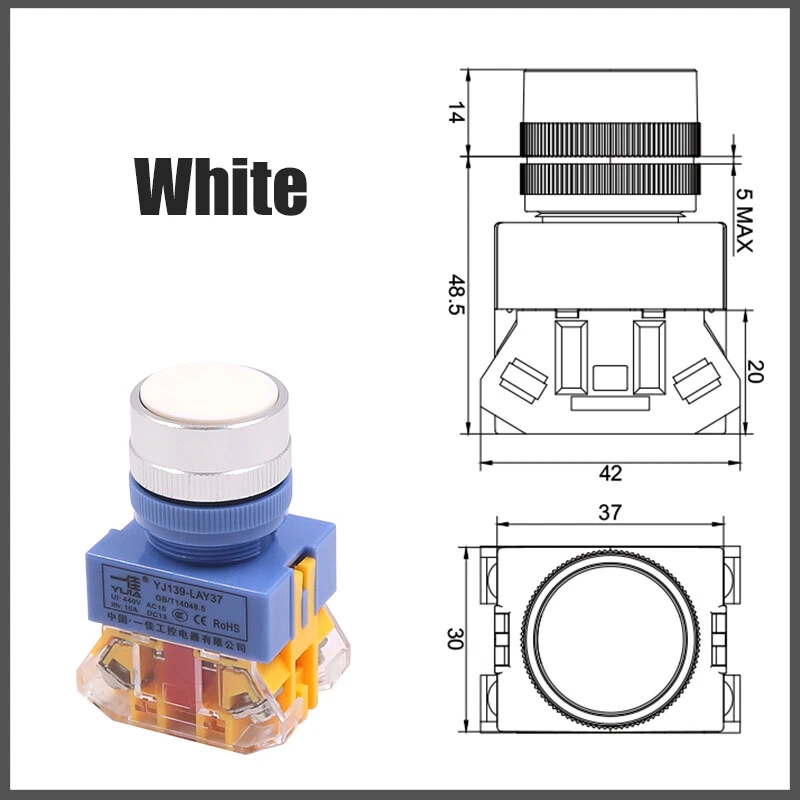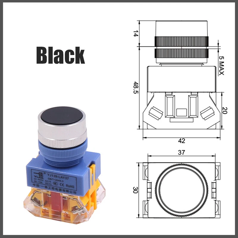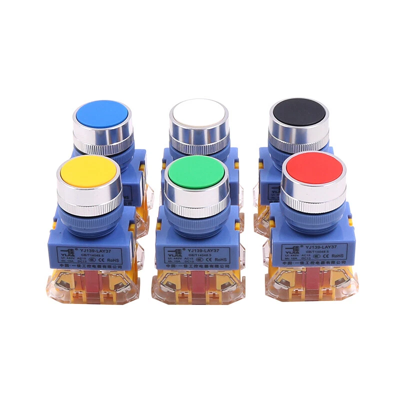 22mm Momentary Flat Push Button Switch in Black White Red Green Yellow