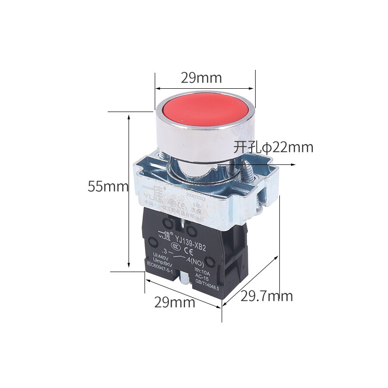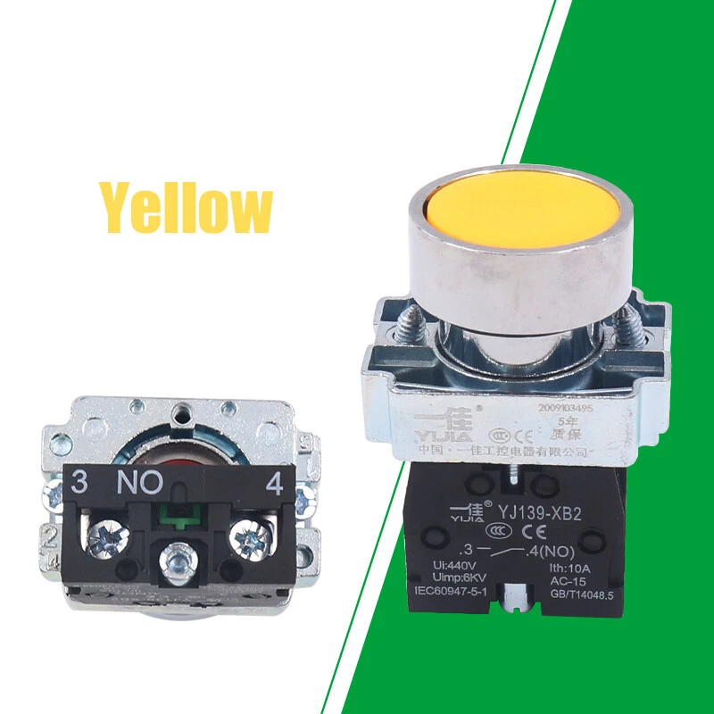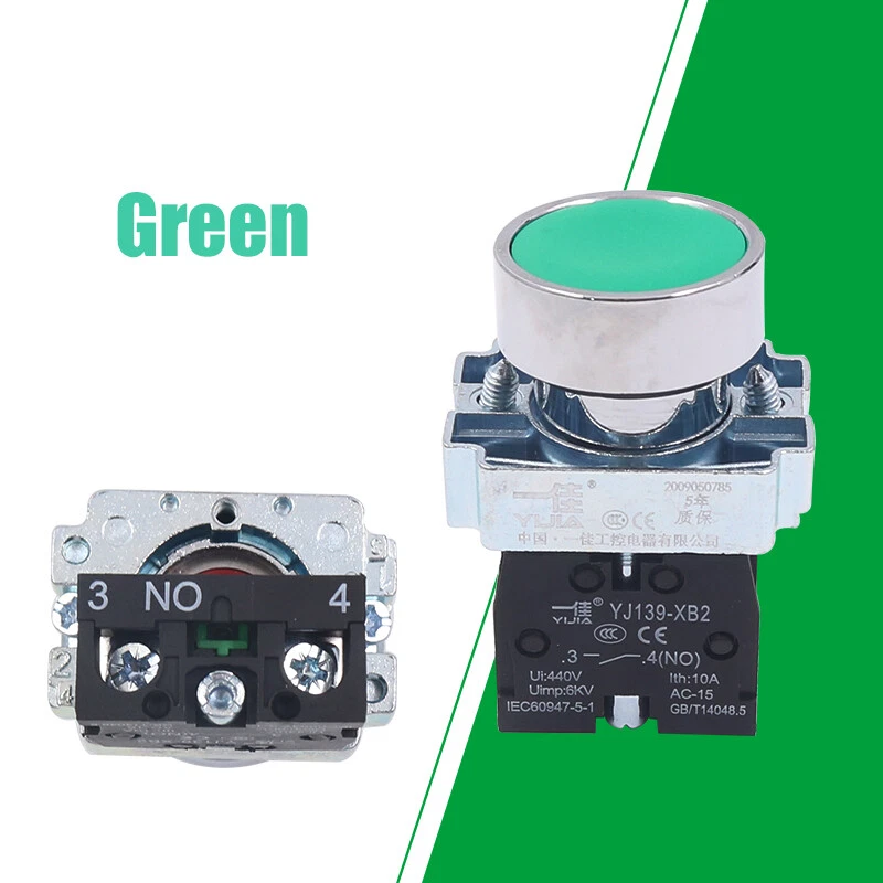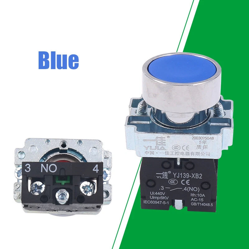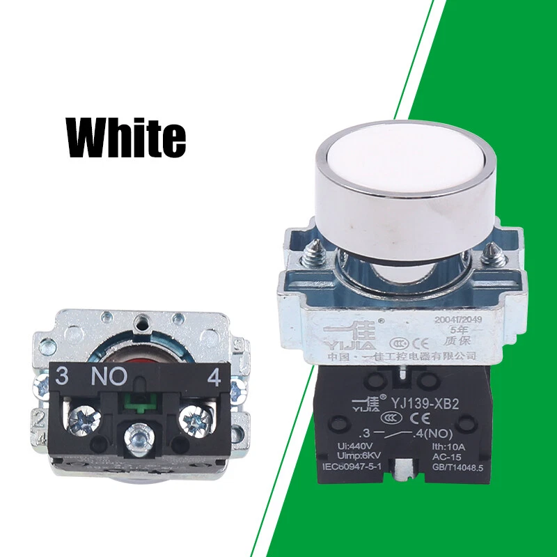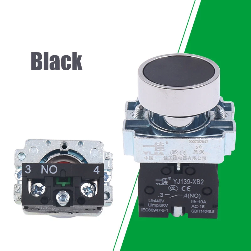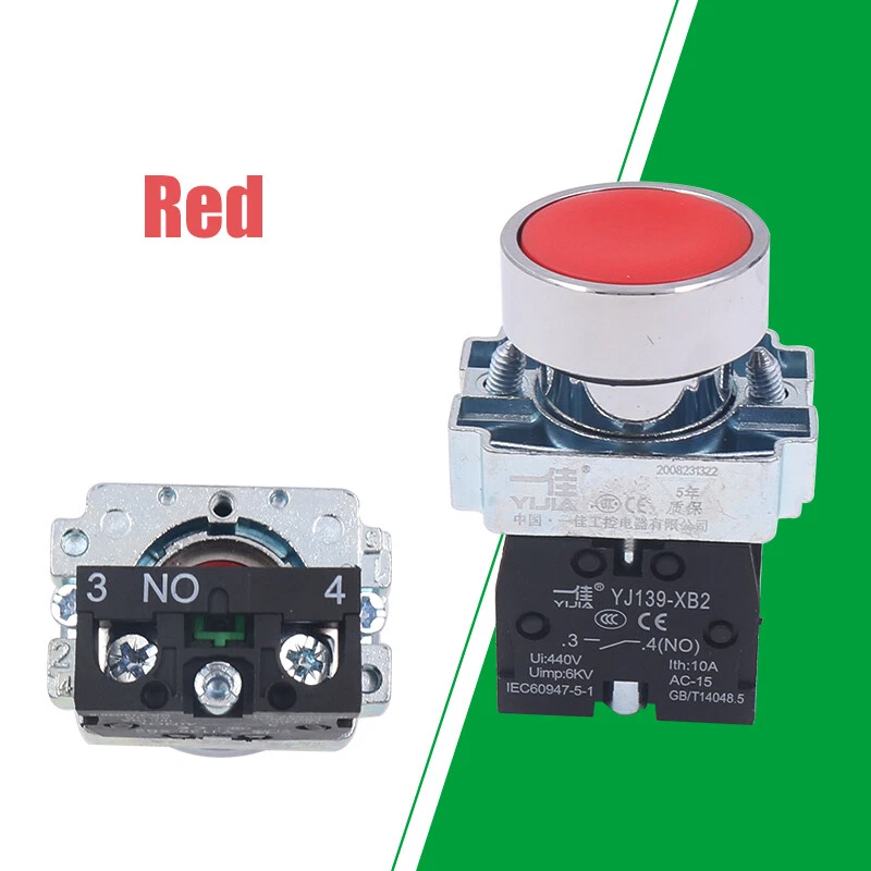22mm Push Button Switch Momentary Flash Head Switches NO NC 220V 10A Mulitcolor Product Information: Suitable for Panel Mounting Hole Size: 22mm Color: White, Red, Yellow, Geen, Blue, Black Contact: Silver Alloy Rated insulation voltage(Ui): 440V Contact: 1 NO / 1 NC / 1NO 1NC / 2NO Features: - Thermosetting material, good heat resistance, will only gradually carbonize even if it encounters an open flame, and will not burn, making it safer to use. - Adapting to more extreme use environments. Button function description: Momentary : press the switch, power on the load, release the finger, reset the button, power off the load Latching : press the switch, load power on, and then press the switch, load power off Description of contact switch: Normally open (NO): default state,Normally Open; The contacts close when pressed(Green means NO) Normally close(NC): default state, Normally Closed; Contacts open when pressed(Red means NC) P a ckage Including: According to your choice.