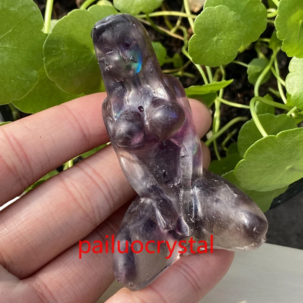 2.3" Amethyst Women Naked Quartz Crystal Skull Carved Goddess Figurines Gem 1pc
