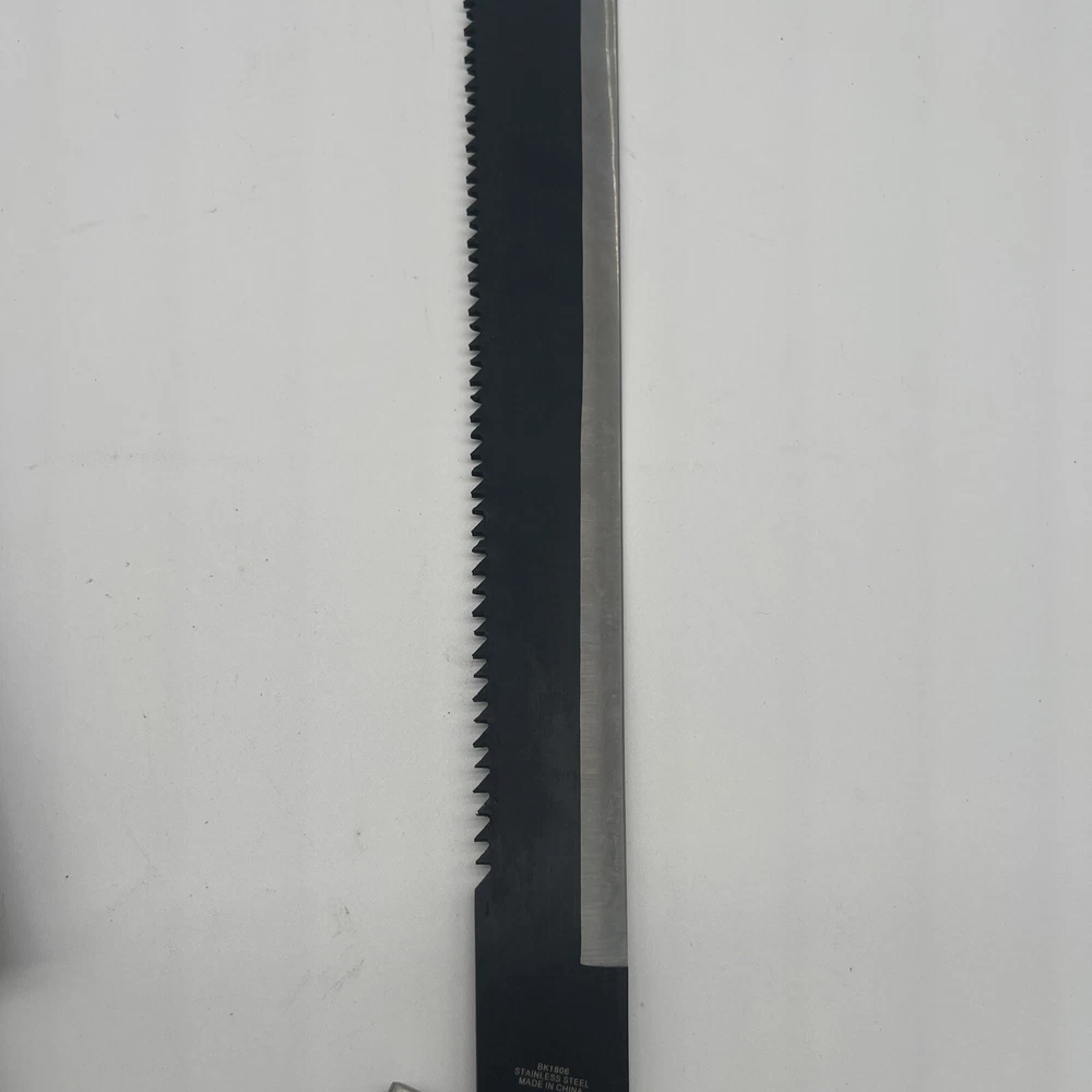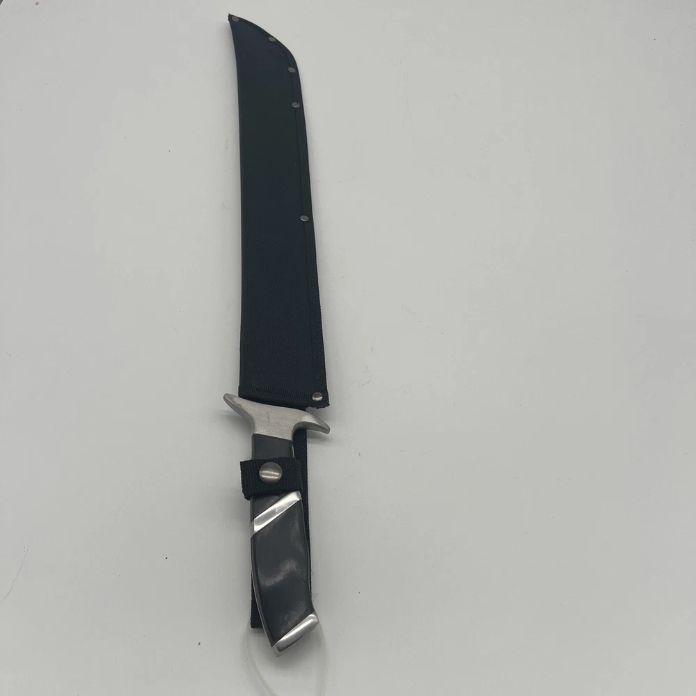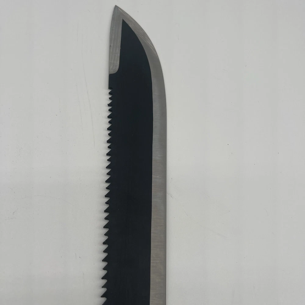 This 23" hunting/survival knife features a 17" black stainless steel blade with a combination edge, perfect for both hunting and survival situations. The handle is made of durable black plastic and comes with a convenient sheath for easy storage and transport. This knife is a must-have for any outdoor enthusiast or collector of modern fixed blade knives. It is manufactured in China and is a great addition to any collection of knives, swords, and blades.