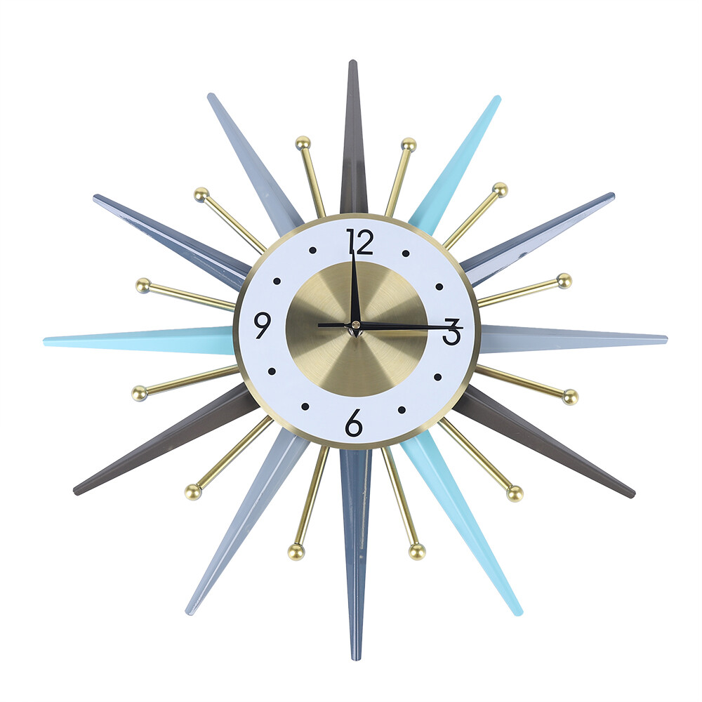 23 Inch Retro Metal Art Sunburst Clock Vintage Mid Century Modern Wall Clock NEW