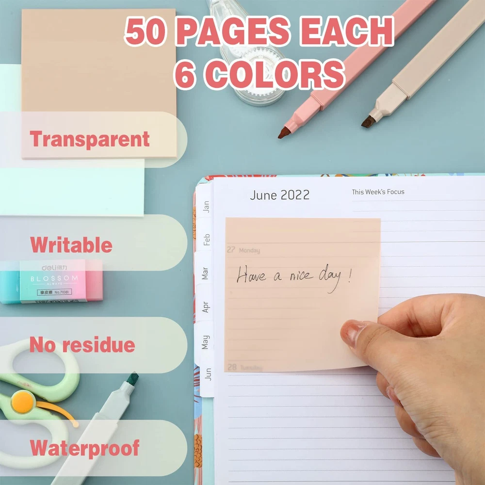 What You Will Receive: you will receive 12 pieces of cute highlighters in different colors, 5 pieces of aesthetic pens for journaling with black ink inside, 6 pieces of clear sticky notes, each sticky note has 50 sheets, 300 sheets in total; Enough quantity to meet your daily needs Soft Colors and Translucency: the highlighters, gel pens, and clear sticky notes in the set are all soft colors; The sticky notes are translucent, so they don't completely hide the information you marked, which is very convenient to use Fine Workmanship: these pastel transparent sticky notes are made of PET material, they are waterproof, with size in approx. 3 x 3 inches/ 7.5 x 7.5 cm, can be applied to most pens, and they can be well attached to the wall and do not fall off easily; And they are suitable for ballpoint pens, pencils, markers, oil pens and so on, not recommended for highlighters, ink pens, as they may take a long time to dry Suitable for Writing: these pastel highlighter pen sets are made of reliable materials, strong and safe, suitable size, easy to hold in hand, and will not get tired easily even if you write for a long time, their ink will dry quickly, and won't stain your sleeves; The aesthetic pen is retractable, and the pen clip is easy to carry and avoids loss Applicable for Daily Use: these cute pens and sticky notes are applicable for journal, planner, work, study, notes, annotating and so on, also can be widely applied in school, university, home, office and even when traveling
