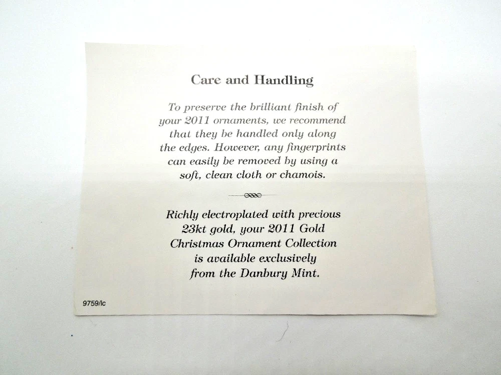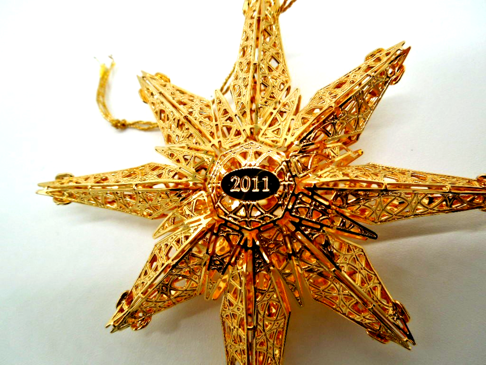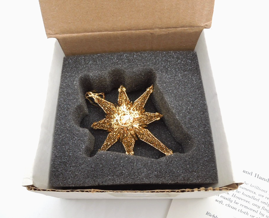 Retired 2011 23 kt gold electroplated and fine filigree Christmas Ornament by Danbury Mint in original box. No signs of use.