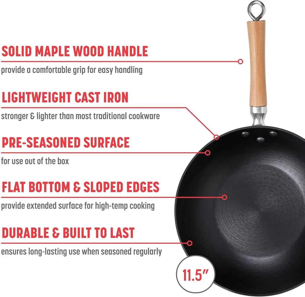 Store New Arrivals Add to Favorite View Feedback Contact 23-0003, Lightweight Cast Iron Stir Fry, 11.5-Inch Description Item Weight 2.96 Pounds Capacity 2.5 Quarts Color Black Is the item dishwasher safe? No Material Cast Iron Compatible Devices Gas Has Nonstick Coating No Is Oven Safe Yes Handle Material Wood Model Name Professional Series 11.5-Inch Cast Iron Stir Fry Pan with Maple Handle Recommended Uses For Product Stir-frying, high-temperature cooking Global Trade Identification Number 00048002230032 Special Feature Induction Stovetop Compatible Special Features Induction Stovetop Compatible Product Care Instructions Hand Wash Only Size 11.5" Stir Fry Pan Cast Iron Famed cast iron performance that pro chef’s prefer 2.5mm cast iron gauge that’s a thinner, lighter, and more maneuverable composition Flat bottom and sloped edges extend the surface for high-temp cooking Solid maple handle is removable to easily pop the pan into the oven Handwash soon after using, wiping away any excess moisture, for best results Season often to get the most life, flavor, and character out of your wok Dimensions: 11.5 inches round Get traditional cast iron performance but at almost half the weight. Constucted of a new lightweight cast iron the pan has great even heat distribution with good temperature control and excellent heat retention. It's pre-seasoned and ready to cook. Features easy clean Silicone exterior and solid maple handle. 11. 5 inch dia. . ABOUT US We offer the best prices around on high quality products. Our E-store includes media such as books, movies, music and games while offering electronics, toys, sporting apparel, clothing, tools, general home, garden items and more. SHIPPING We are always working hard to ensure your package arrives as soon as possible. Please understand that some factors like weather, high postal traffic, and the performance of shipping companies are outside of our control. We offer free shipping to the lower 48 states and ship within 2 business days of payment, usually sooner. We do not accept P.O. Boxes. Please provide a physical address. For shipping outside of the continental USA, we only use eBay's Global Shipping Program.The item is shipped to KY and then sent to the rest of the world. International customers are responsible for all duties and taxes. Continue to check out in order to calculate costs for shipping the item to your country. Messages regarding eBay's Global Shipping Program MUST be directed at eBay EXCLUSIVELY. RETURNS We offer a 30-Day Return Policy on items which you are not completely satisfied with. You have the option for a full-refund or an exchange of the item. No returns are available on items shipped outside of the USA. PAYMENT We accept PayPal. CONTACT US This page content is yet to come Please ad us to your favorite seller and visit again later Thank You CUSTOMER SATISFACTION We try our very best to make sure every customer is completely satisfied. If there's a problem, message us! We're happy to help. WE ACCEPT Copyright © 2021 AutoDS. | All Rights Reserved
