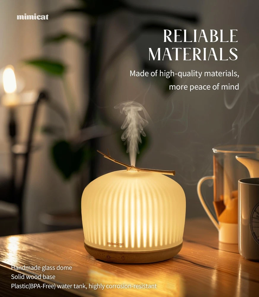 Transform your living space with the elegant Glass Essential Oil Diffuser, featuring a white frosted glass cover adorned with a gold branch decoration. This stylish diffuser not only enhances your home décor but also offers numerous features to elevate your aromatherapy experience. Ideal for home, bedroom, meditation, spa, studio, office, hotel, apartment, etc., you can enjoy a quiet and peaceful space full of fragrance With its substantial 230ml capacity, ensuring your favorite essential oils diffuse smoothly and efficiently. The solid base adds a natural touch, perfectly complementing the sophisticated design. Our diffuser includes three LED light modes: bright, dim, and candlelight. These adjustable light settings allow you to create the perfect ambiance for any occasion. Safety is paramount with our auto shut-off function, which activates when the water level is low, giving you peace of mind during use. Plus, the touch button design ensures ease of operation. Designed for large rooms, this diffuser operates quietly, making it an ideal addition to bedrooms, living rooms, or office spaces. Enjoy the benefits of aromatherapy without the disturbance of noise, creating a serene and tranquil environment. Embrace the fusion of functionality and aesthetic appeal with our Glass Essential Oil Diffuser, the perfect accessory to enhance your home and well-being. 230ML Glass Aroma Diffuser: White frosted glass dome with solid wood base, aesthetic appearance, only the water tank is made of high-quality recyclable plastic, it's highly corrosion-resistant, it’s a modern and fashionable designed diffuser Essential Oil Diffuser for Woman: It’s a best gift for hostess. Your room will be scented in 30 seconds, also suitable for girls, pets, children, lady, or your daughters, friends family wife mom sister colleagues Aromatherapy Diffuser for Home: Suitable occasions for office bedroom sleep kitchen yoga meditation relaxing SPA studio, it can create a quiet and peaceful atmosphere for you to enjoy your space and scent aroma Super Quiet Running: It works very quietly, without noise and enjoy its tranquil mist and scent during sleep or working. When there is no water, it will turn off automatically, it’s also very safe Easy to Use: Two ultrasonic cool mist modes, continuous spray can work for about 8 hours and intermittent mode can work for about 18 hours. Three light modes: bright warm light, dark warm light, candlelight