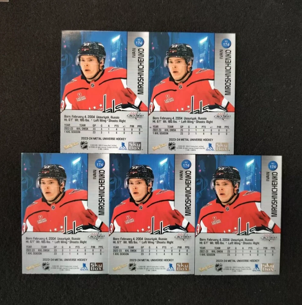 23-24-Skybox Metal Universe HOCKEY IVAN MIROSHNICHENKO ROOKIE LOT(5) #174 TCW