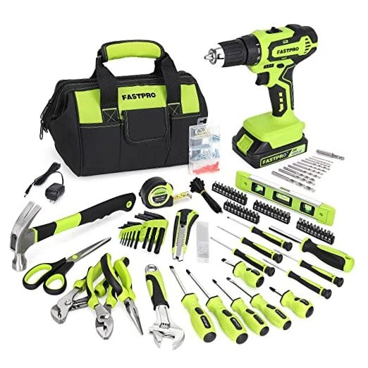 Return Policy Fast Delivery Trusted seller 232-Piece 20V Cordless Lithium-ion Drill Driver and Home Tool Set, Household Repairing Tool Kit with Drill, 12-Inch Wide Mouth Open Storage Tool Bag, Green Product Description The drill kit contains almost every basic hand tools you need for work and DIY projects around the house The cordless drill driver is powered by a max powerful 20-Volt, 1.5AH Lithium-ion battery for enough power for a full range of applications .It features a 3/8 in. keyless chuck with a 19-position clutch adjusts torque output to control the depth of the screw or fastener. The drill is designed with variable 2-speed settings (0-400 rpm and 0-1500 rpm) for multiple purposes. Pliers are constructed by forged steel with heat treatment for strength and durability, hardened cutting edge for easy jobs. 12-inch tool bag for well organization. Notice:This is a carbon brushes drill. It is normal that the brushes produce sparks from the electromagnetic charge which are clearly visible inside the drill. Includes cordless drill driver, slip joint pliers, groove joint pliers, adjustable wrench, long nose pliers, magnetic screwdriver holder, screwdriver bits, tape measure. The tool kit with drill is perfect for your home use or gifts Shipping Returns Payment Shipping Shipping is FREE to all addresses other than APO/PO boxes in the lower 48 states. All our stock ships from US-based warehouses. Shipped via USPS or UPS (depending on location and package weight) Unless stated otherwise, all orders will ship within 24-72 hours of your payment being processed. Check our feedback to see the great reviews of FAST shipping we offer. Returns Seller does not accept returns Payment We currently accept payment via eBay managed payments only. Once payment is cleared, we will dispatch your shipment within 1-3 business days. Please refer to the "Shipping" tab for more information regarding shipping speed to your destination.