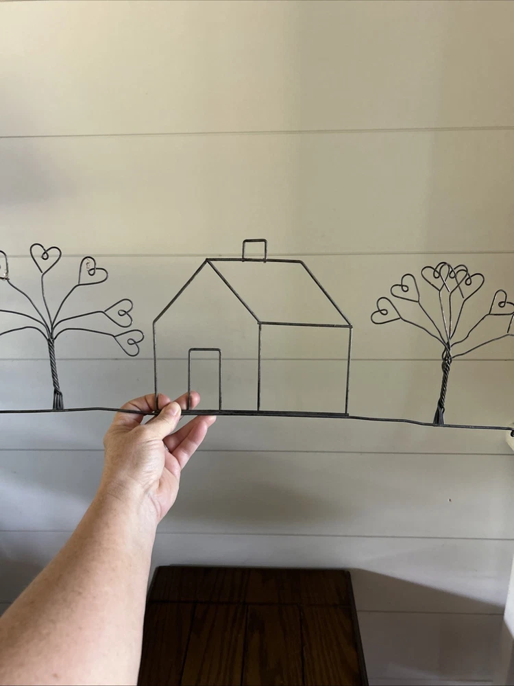 This 23.5" Wire Art Wall Decor features a black farmhouse style design with hearts and trees theme. Made of wire material, it is perfect for adding a decorative touch to any room. The wall-mounted piece can hold a dowel rod and stands at a height of 7 inches. Add a touch of artistry to your home with this unique and stylish wire art wall decor.