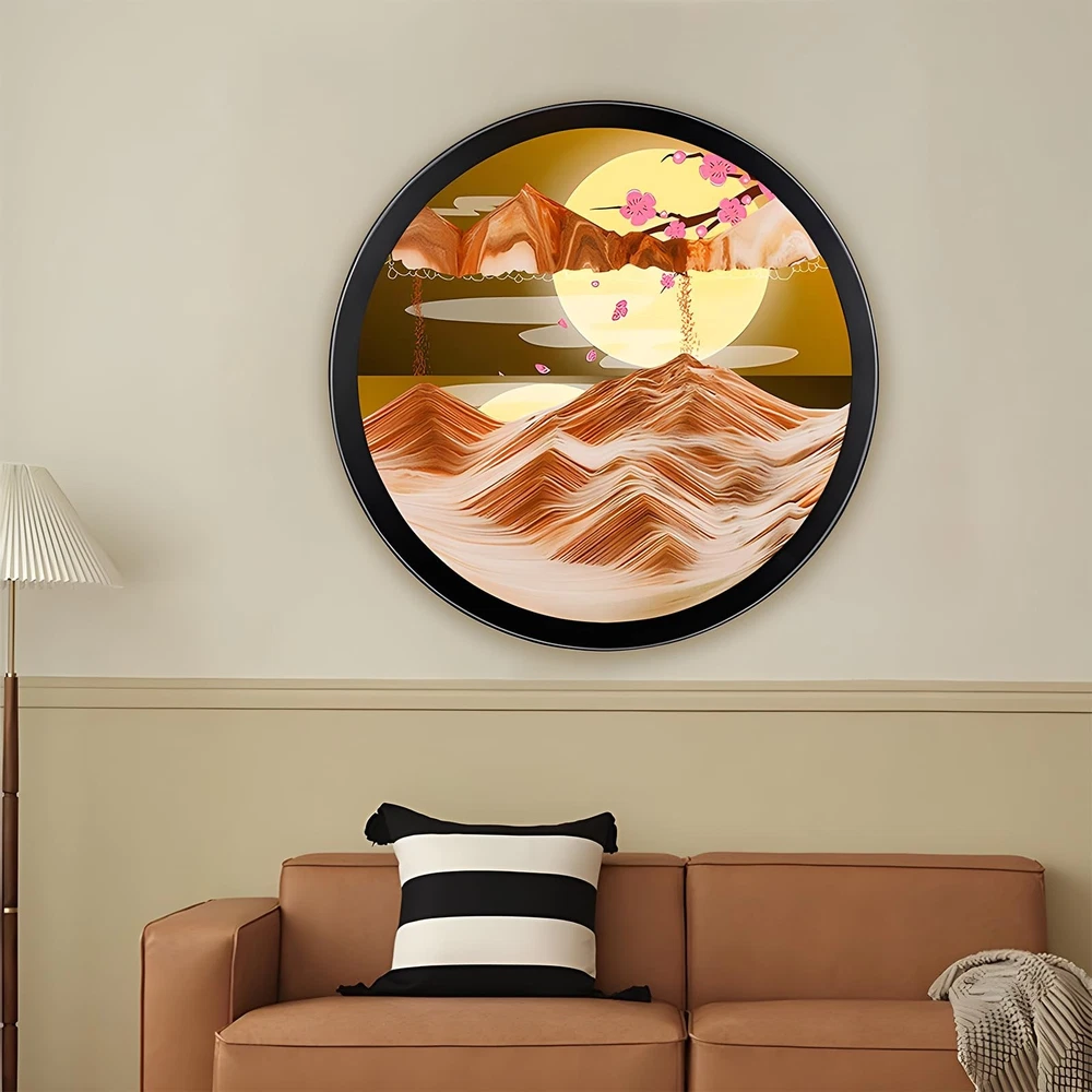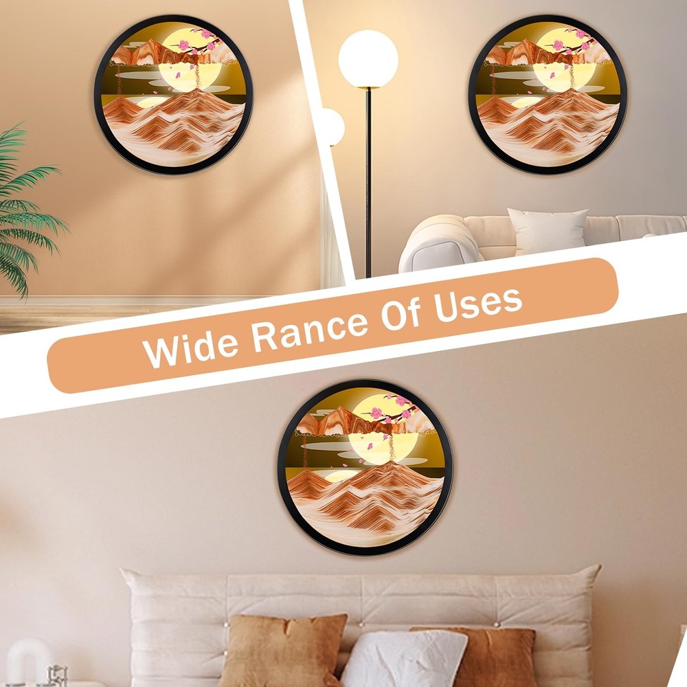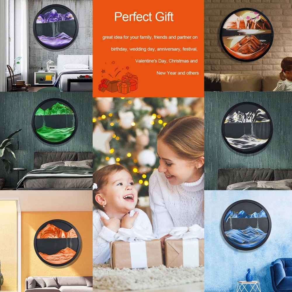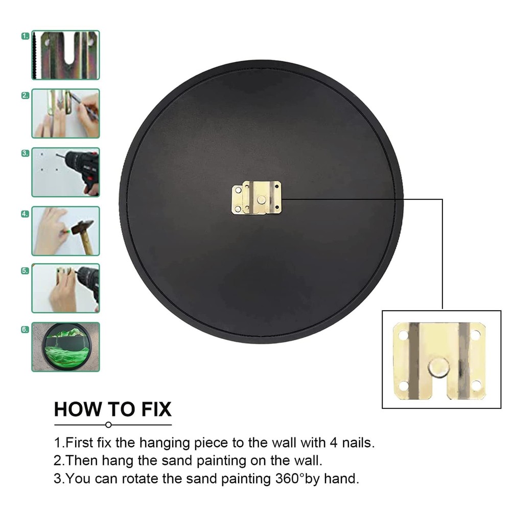 Looking for a unique and elegant way to elevate your home decor? Look no further than this stunning sand painting wall art! This piece features a dynamic sand design that moves and shifts with the slightest rotate, adding a captivating visual element to any room. Name: Quicksand Wall Decoration/Circular Wall-mounted Quicksand Painting Material: glass + solid wood Diameter: 23.6'’ Category: Quicksand Painting Hanging form: hanging ornaments Style: modern and simple Modeling: Abstract Packing: carton pack Package list: Round wall hanging quicksand painting x1 【STRESS-RELIEVING SAND ART DECOR】Unwind and relax with our beautiful moving sand art picture. The smooth movement of the sand creates a calming effect, perfect for stress relief after a long day 【UNIQUE AND LUXURIOUS DESIGN】Crafted by local artisans, our sand art liquid motion wall art features exquisite details and a beautiful color combination. Made with fine quicksand and a solid wood frame, it adds elegance and luxury to any home. Enjoy the 360° rotation feature for a full view of the sand art's beauty 【VERSATILE KINETIC WALL ART DECOR】Enhance any space with our round sand art wall sculpture. Whether it's the living room, bedroom, or kitchen, our nature-inspired art adds warmth and romance. Ideal for farmhouse-themed homes as well 【EASY TO HANG】Installing our moving sandscapes wall sculpture is a breeze. It comes with a hook and bracket brace for effortless installation. Add texture to your walls and maintain a high-end ambiance in your home with ease 【GREAT GIFT IDEA】Looking for a fun and unique gift? Our 3d color quicksand decor is perfect for elders, loved ones, children, and friends. It's affordable and leaves a lasting impression. A great housewarming or business gift, or for anyone seeking decorative wall art. 【NOTE】Unfortunately, we can’t provide syringes and needles. Maybe you can buy it at a pharmacy. A small disposable syringe is enough. After receiving the moving sand art, if the sand flow rate is too fast, there is a small hole in the border of the sand painting, you can inject some air, if the flow rate is too slow, you need to extract some air, generally the height of the bubble is kept at 0.2-0.4inch , the sand flow rate is relatively moderate, which can form a wonderful pattern.