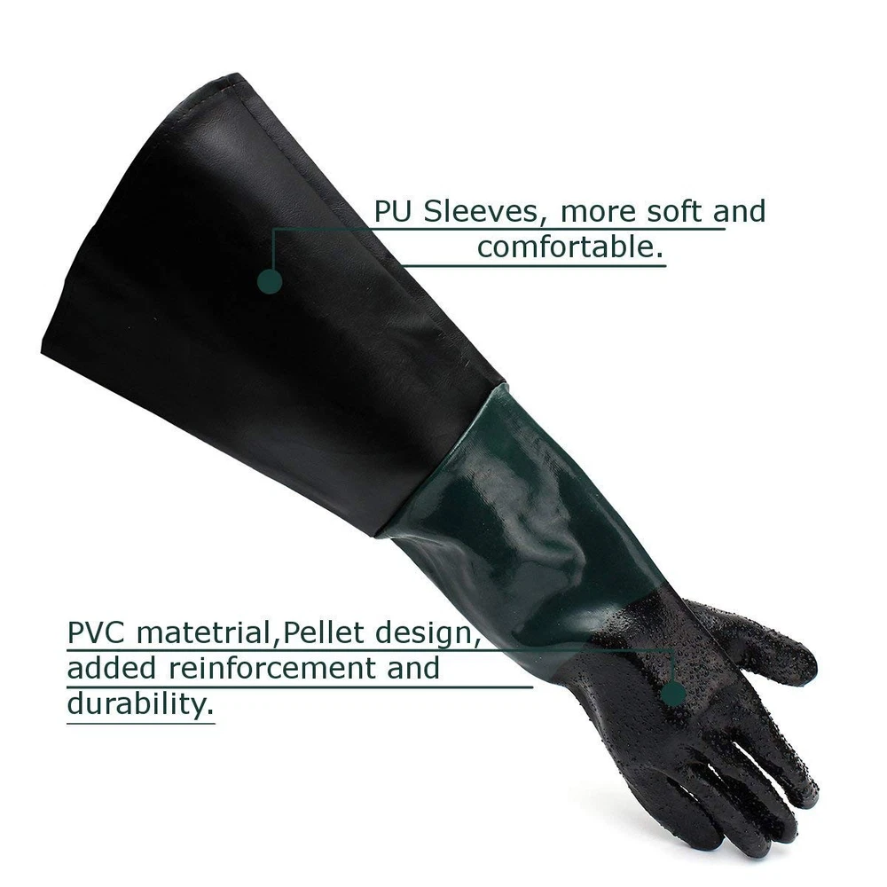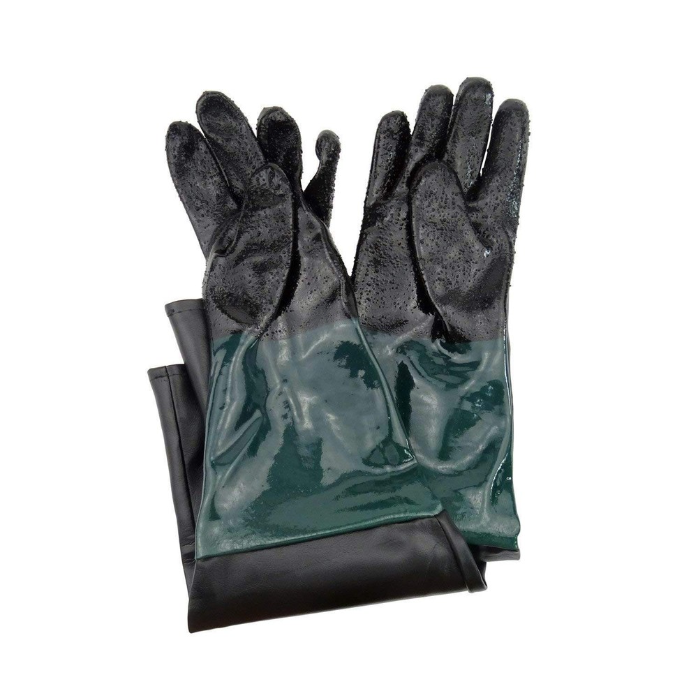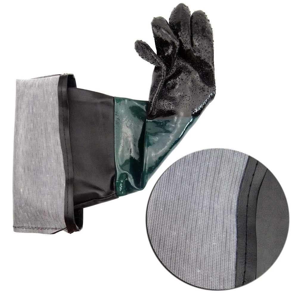 These gloves are a game-changer for sandblasting! The thick rubber/PVC material provides excellent protection against abrasions, and the extra-long 23.6" design keeps your arms fully shielded. They fit snugly in most cabinets, with a comfortable 8" opening that doesn’t restrict movement. Durable and easy to clean—perfect for heavy-duty work. Highly recommend for anyone needing reliable blast cabinet gloves!