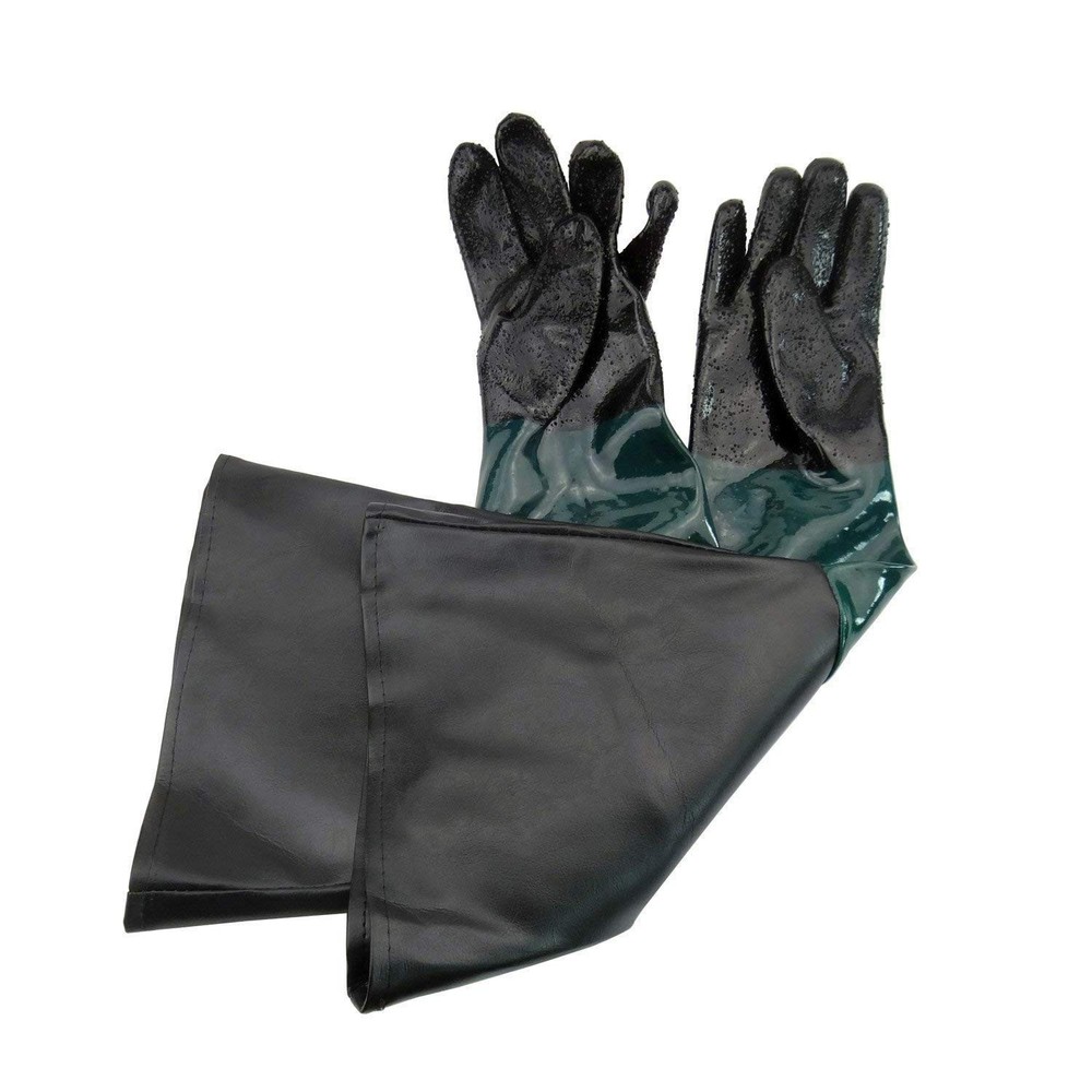 Safety Work Glovesfff 1 Pair of safety work gloves for sandblasting cabinets 23.6-inch Length.,11-inch width,8-inch diameter opening Gloves fit most sand blasting cabinets