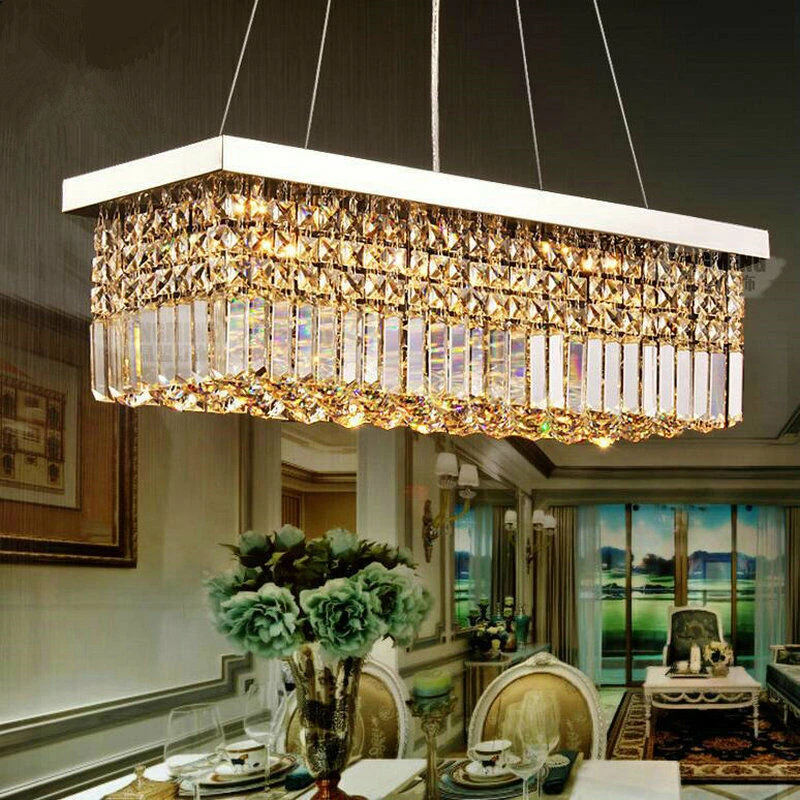 23.6" Rectangular Ceiling Light Crystal Chandelier Pendant Lighting Fixtures
