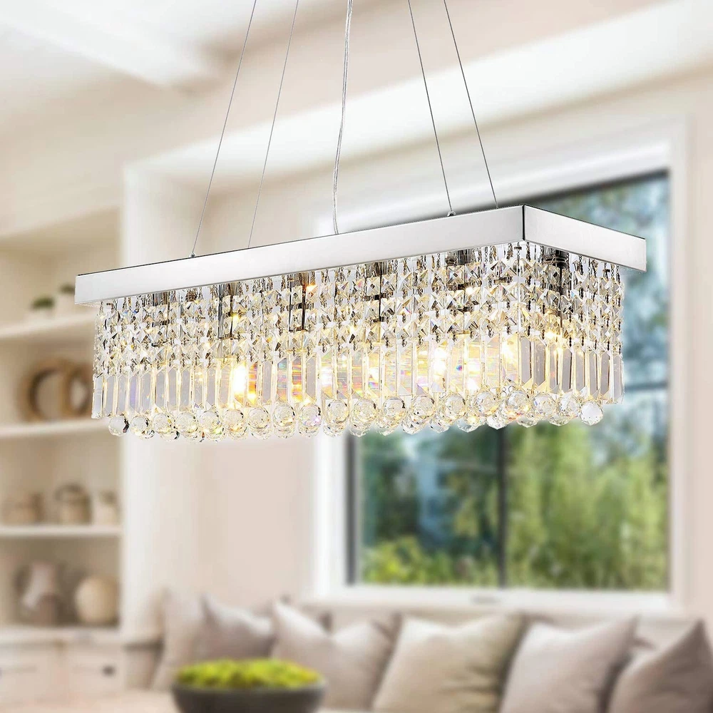 Size: Length: 60cm =23.6" Width 24cm=9.5" Height: 22cm=8.9" Cable length: 100cm=39.4" (cable length is adjustable.) Material:crystal+metal Color:Silver Max. 40W E12 bulbs,Require 4pcs E12 Bulbs (Not Included Bulbs). Voltage: 110V - 120V 23.6" Rectangular Ceiling Light Crystal Chandelier Pendant Lighting Fixtures Size: Length: 60cm =23.6" Width 24cm=9.5" Height: 22cm=8.9" Cable length: 100cm=39.4" (cable length is adjustable.) Material:crystal+metal Color:Silver Max. 40W E12 bulbs,Require 4pcs E12 Bulbs (Not Included Bulbs). Voltage: 110V - 120V Payment Delivery details Terms of sales About us Contact us Payment We only accept several paymeny ways as follow: Delivery details Your goods will be shipped within our handling time after your full payment. This excludes these locations: Alaska, Hawaii and Puerto Rico.APO/FPO’s are definitely excluded. Terms of sales Return: We accept return within 30 days,but we are not responsible for human damage.The return shipping cost is the buyer's responsibilities and try to keep it in your original package. About us We are selling all kind of ceiling fan,crystal chandelier,pendant lights in high quality with best discounted price. Our goal is providing all our customers 100% satisfaction and best customer service. Contact us If you have any questions please contact us through "Ask seller a question" link. We will respond within 2 business day or less.
