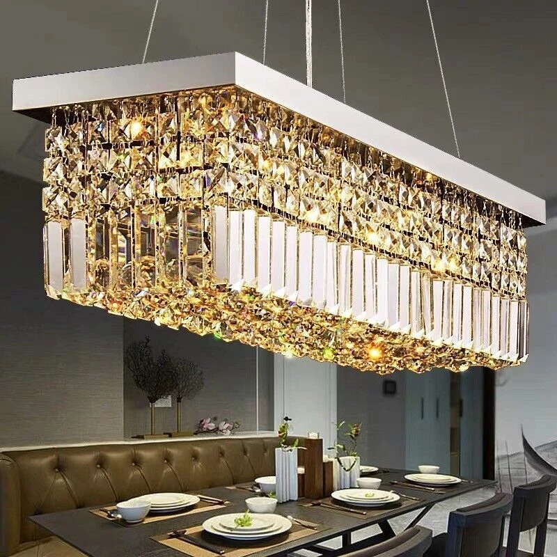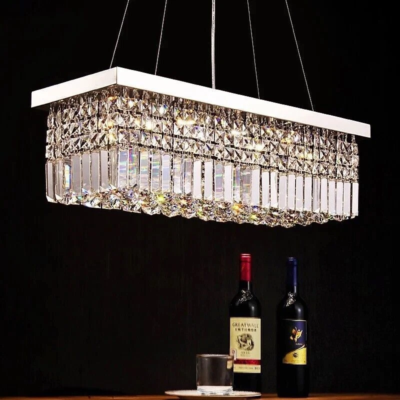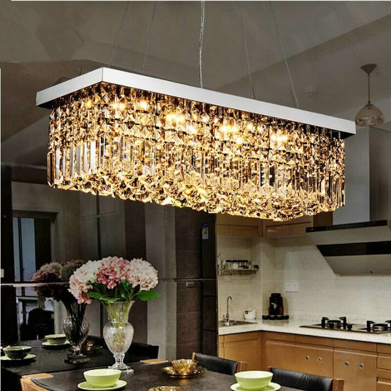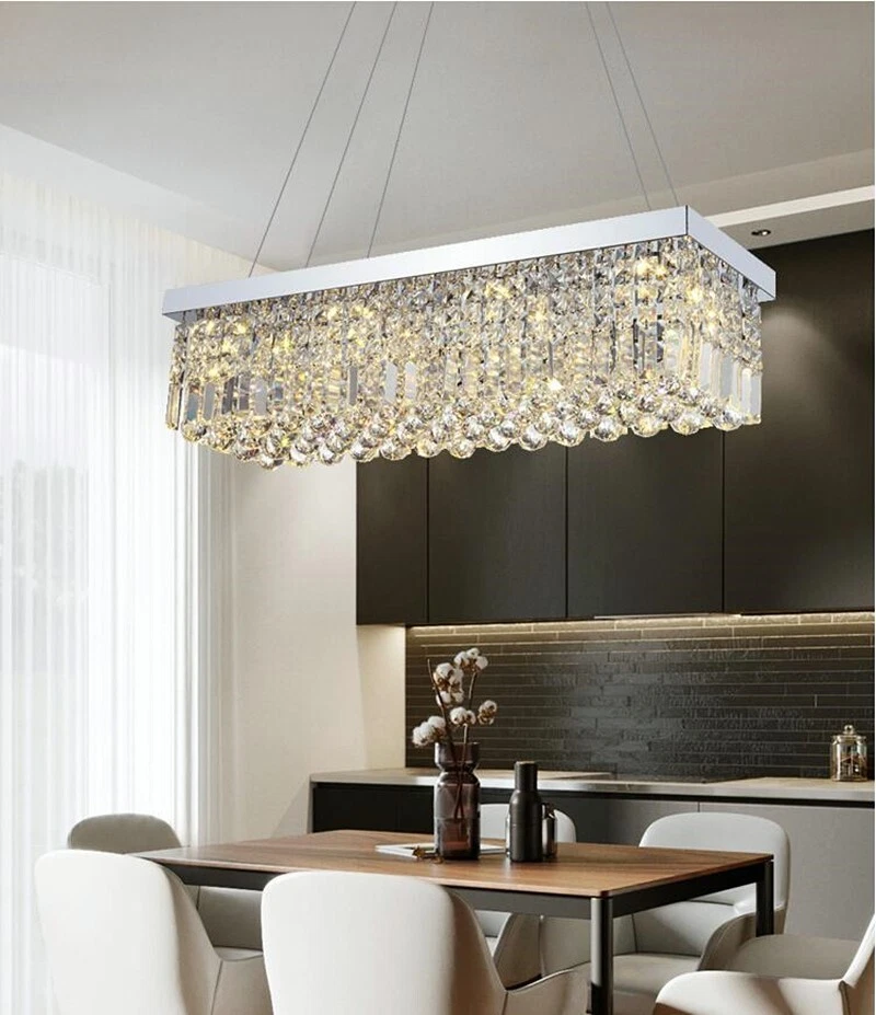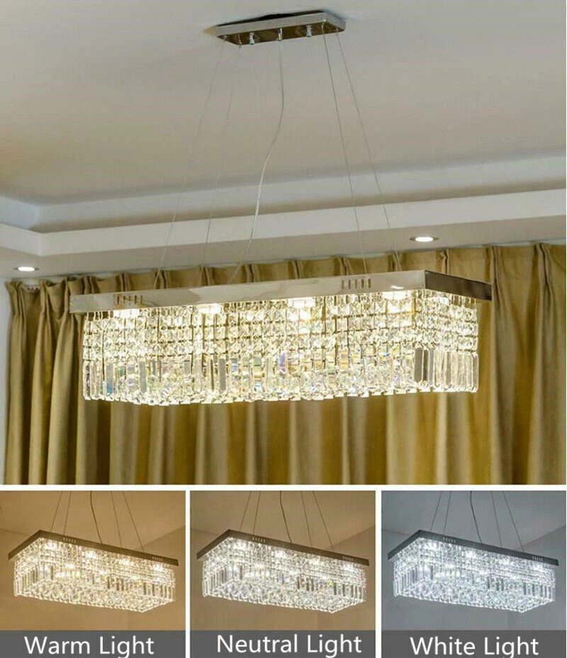 EC Range: A+++ - G Light Color: / Style: Modern Assembly Required: Yes Country/Region of Manufacture: China Shade Shape: Rectangle UPC: Does not apply gtin13: Does not apply Department: Adults Room: Bar, Bedroom, Dining Room, Hallway, Home Office/Study, Kitchen, Living Room Number of Settings: 1 Type: Chandelier Features: Height-Adjustable Number of Lights: 4 MPN: Does Not Apply Installation Area: Indoor Lighting Technology: LED Color Temperature: / Sensor Type: Light Brand: Unbranded LED String/Strip Type: / Power Source: Hardwired Color: Silver Energy Star: 3 Stars Control Style: Wall Switch(Not included) Cord Color: / Voltage: 110 V Material: Crystal, Metal Finish: Metallic