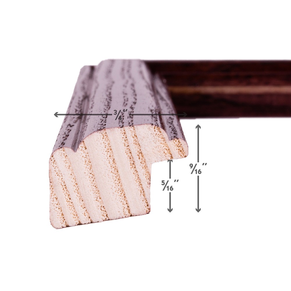 Traditional style; semi-gloss cherry read stain finish; visible wooden grain **color and grain pattern may vary slightly with each frame** Frame includes: glass, rigid black backing and pre-attached stamped hanging hardware Frame holds a 4 x 10" photo/print/poster (viewable area reduced by .25On each side due to frame lip) Frame molding is 0.75 inches wider; solid ash wooden construction Frame is designed for wall hanging only (hanging hardware allows for portrait or landscape orientation)