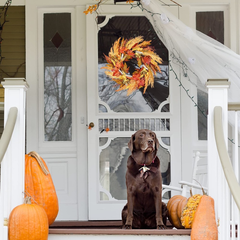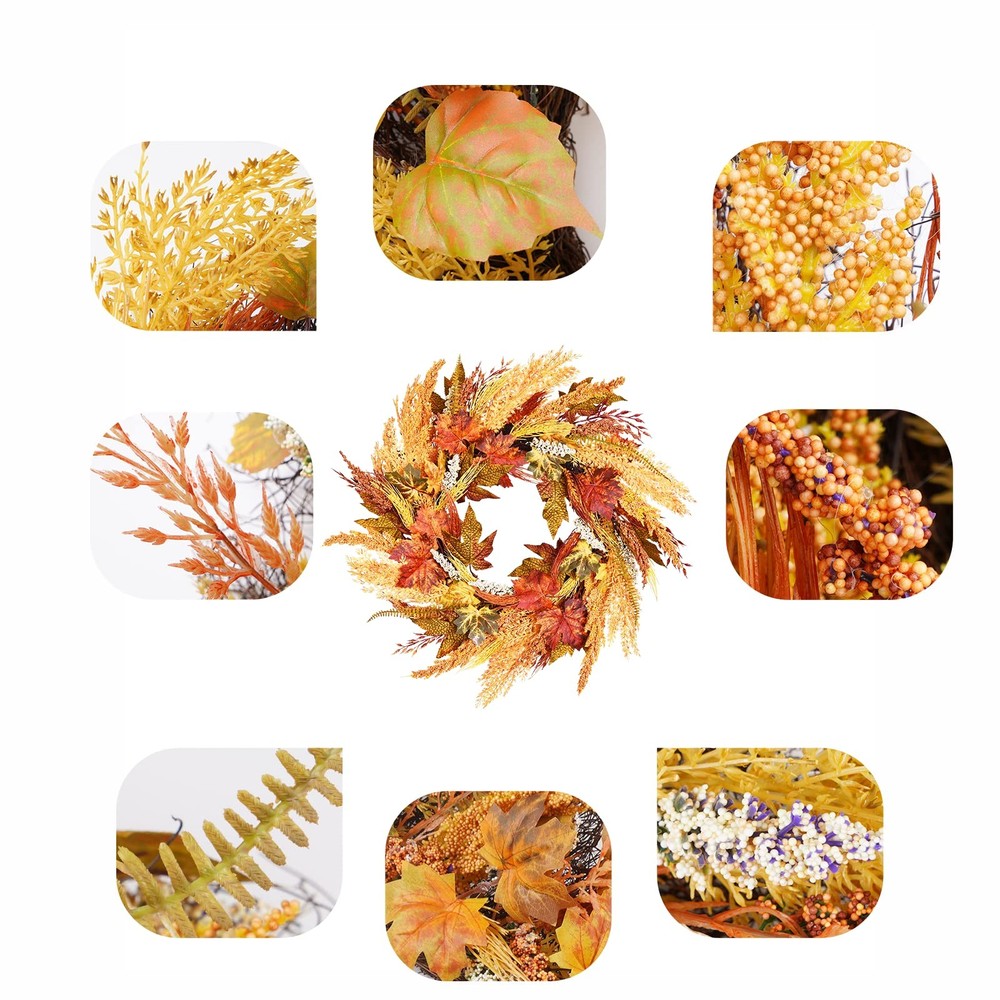 fall door wreath 24 inch Fall Wreath Wreaths for Front Door Farmhouse Wreath for Front Door Autumn Wreath for Thanksgiving Wall Window Home Decor Orange Wreath front door wreath farmhouse harvest wreath for front door 【High-quality Material】 Artificial fall wreath, handcrafted and more real. Uses environmentally friendly material, exquisite and durable. Simple elegant and comfortable color, vivid natural form, create an artistic romantic atmosphere. Light up your space with our energetic fall reef for door. 【Durable】 This wheat wreaths for front door have UV protection and helps prevent fading will look great for years to come. Silk leaves and wood-like shape base made it last long years. No hassles with needle clean-up or maintenance are required. A must-have thanksgiving wreaths for fall season outdoor. 【Size】 This thanksgiving decorations measure 24" in diameter, orange and brown design, symbolizing the year of the autumn harvest. The fall wreaths for front door outside is filled with beautiful artificial foliages and fake wheat spikes is the perfect harvest time decoration! Realistic leaves in various stages of fall color and berries complete the lush fall wreath look. 【Widely Use】 This fall door wreath can be used indoors or outdoors. Hang it on the front door, living room, fireplace, cabinets, walls, windows, shelves and other places you like. If it is outdoors, it is recommended to hang it on the covered porch to avoid direct sunlight and rain. 【Warm Tips】 For best longevity, keep out of direct sunlight and rain. If there are any problems with our products, please contact us at the first time, we will reply to you ASAP.