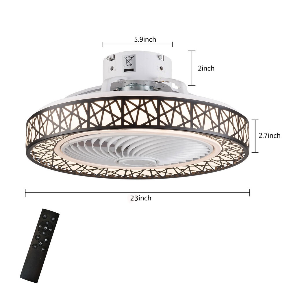23” Modern Invisible Ceiling Fan Light LED Dimmable Chandelier Lamp w/Remote New Enclosed Ceiling Fan with Lighting, Low Profile Ceiling Fan Ceiling Lighting, Dimmable with Remote Control, 3 Files, Adjustable Wind Speed, Modern Bedroom Description This ceiling fan light has a bird's nest-shaped design. You can freely adjust the three kinds of wind speeds and color temperatures. Its low noise will not interfere with your sleep to give you a quieter environment. It is suitable for the bedroom, living room, dining room, restaurant, hotel room, convenient store, etc. Key Features Adjustable Wind Speed: It has three kinds of gears for your option. The first gear is gentle, which is suitable to set for rest and sleep. The second gear is for creating a cool and comfortable environment. The third gear becomes cooler, which can quickly reduce body temperature. Low Thickness: The lampshade is only 7cm thick, so you won't feel oppressed even placed on a low ceiling. Quite: The ceiling fan light is equipped with a pure copper motor, which produces low noise. It won't interfere with your sleep but give you a quieter environment. Remote Control: Three kinds of color temperatures and wind speeds can be remotely adjusted, which is more convenient and labor-saving. Double Functions: It has both fanning and lighting functions. The ceiling fan light can not only illuminate your space but also can reduce the heat. Exquisite Appearance: The distinctive design and artistic contours create a wonderful atmosphere for your place. Easy to Clean: When you clean this ceiling fan light, you only need to wipe with a cloth, and then it can shine like a brand new light. Energy-saving and Money-saving: LED is more energy-saving and money-saving than other power resources so that it doesn't cause economic and environmental burdens. Soft and Safe Light: The LED releases a safe and soft light to protect your eyes and brain. Details Acrylic Lampshade : The acrylic material is translucent, allowing the LED light to shine through. So the light can effectively brighten your space. High-quality Protective Net: It has a high-quality protective cover in the middle to ensure that the fan blades inside will not fall out, so it’s safe and secure. Timing Device: You can control its working hours (1/2/4 hours) in advance with the remote control, which can bring you great convenience. Application This fan lamp is suitable for a room of about 15-20m 2 . It is applicable for the bedroom, living room, dining room, restaurant, hotel room, convenient store, etc. Specification Category: Ceiling Fan Light / Ceiling Lamp Style: Modern/Simple/Creative Material: Acrylic + Metal Colors: Warm, White, Neutral Wind Speeds: Low, Medium, High Fixture Diameter: 23"/58cm Fixture Height: 2.7''/7cm Bulb Type: LED (Included) Bulb Base: SMD Wattage: Max 60W Voltage: AC110-120V Irradiation Area: 15-20m 2 (161.46-215.28ft 2 ) Installation The item needs to be installed by yourself. Please read the user manual as a reference. Please contact us if you have any questions. We will reply and solve your problem as soon as possible. Package Included Ceiling Light x 1 Remote Control x 1 English Manual x 1 Notes Please check the dimensions before ordering, just to ensure it is suitable for your room. Please read the operating manual completely before use. And pay particular attention to the safety instructions included. Do not connect the power supply until the light is fully assembled. All wires are connected. When opening the package, please be careful not to pull on the wires, which may result in a poor connection. To reduce the risk of fire, electric shock, or personal injury, always turn off and unplug the light and allow it to cool before replacing the bulb. Do not touch the bulb or look directly at the lit bulb when the light is turned on. Keep flammable materials away from the bulb. Please allow the slight color difference caused by the shooting light and 1-3 cm error due to manual measurement, and make sure you do not mind before ordering. Payment Delivery details Terms of sales About us Contact us Payment We accept ebay payment 。 Fees such as import duties, taxes are not included in the item price or shipping costs. These charges are the buyer's responsibility. Delivery details Shipping: 2-9 working days to: USA Terms of sales We maintain high standards of excellence and strive for hundred percent customer satisfaction. Feedback is very important to us. We hope that you contact us immediately before you give neutral or negative feedback, so that we can address your concerns. It is impossible to address issues if we do not know about them! About us Your satis faction is our ultimate goal. We work hard to earn your trust and future business. Our certified technicians have tested each item before shipping. The unit comes with 1 year limited warranty on all manufacturing defects. a) If you receive a defective item, you may return it or ask for a discount. Please contact us within 14 days after you receive the package. b) What you returned must be intact and in its original packaging as re? u. Customer is responsible for shipping costs of the returned item. c) We will cover the cost of shipping back t with the shipping rate indicated in the registration page. We will send you a new unit or refund the full payment you paid. Thank you. Contact us Business Hour Business Hour: Monday To Friday: 8:30 AM to 5:00 PM (Beijing China time) Due to time zones, our reply to your questions may not be immediately. But within above working time, we will reply your email within 24 hours. If it's non-workdays, please kindly be patient and wait till Monday. Please contact us with ebay message. Please feel free to contact us if you have any questions. Monday To Friday: 8:30 AM to 5:00 PM (Beijing China time) Due to time zones, our reply to your questions may not be immediately. But within above working time, we will reply your email within 24 hours. If it's non-workdays, pleas