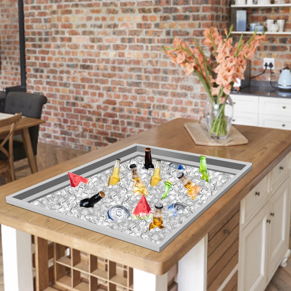Key Features High-quality Material: It is made of food-grade 304 stainless steel, which is not only safe and harmless for storing edible ice or food directly but also very solid, rust-proof, and not easily deformed to ensure long service life. Excellent Ice Retention: The double-walled design and built-in thickened foam insulation effectively prevent cold air from escaping from the inside and keep your ice solidified, so it can keep your drinks cool for a long time. Easy to Clean: The smooth stainless steel surface does not easily hide dirt, making it easy to clean. You can directly rinse it with water and dry it to get it as clean as a new one. Large Capacity: With a capacity of 50L/52.8Qt 23"X17" Drop In Ice Chest 304 Stainless Steel Beer Beverage Cooler BBQ Island Description Do you want to achieve ice drink freedom at your barbecue time or outdoor party? Then this drop-in ice chest will be the ideal choice for you! Its unique double wall design, built-in foam layer, and lid all provide excellent insulation to keep the ice frozen. It will provide you with cool and comfortable iced drinks to make your party more exciting and active! Key Features High-quality Material: It is made of food-grade 304 stainless steel, which is not only safe and harmless for storing edible ice or food directly but also very solid, rust-proof, and not easily deformed to ensure long service life. Excellent Ice Retention: The double-walled design and built-in thickened foam insulation effectively prevent cold air from escaping from the inside and keep your ice solidified, so it can keep your drinks cool for a long time. Easy to Clean: The smooth stainless steel surface does not easily hide dirt, making it easy to clean. You can directly rinse it with water and dry it to get it as clean as a new one. Large Capacity: With a capacity of 50L/52.8Qt, this drop-in ice chest easily stores and cools large quantities of ice, drinks, or frozen foods for the whole family or commercial needs. Outdoor Party Companion: This all-in-one ice chest allows you to take it to any outdoor scene, which will bring cold drinks to your party without the need for an electric refrigerator, making it a great choice for outdoor lineups. Open Design: You can remove the lid to convert it into an open ice chest, which is convenient for customers to take and choose their favorite drink. Space Saving: It adopts a drop-in design, making full use of the space in the bottom cabinet without taking up too much counter space, which will give you a clean and tidy countertop. Customer Service: We aim to provide quality products and services. If you have any problems, please feel free to contact us. We will reply and solve the problem for you as soon as possible. Details Stainless Steel Lid: It is equipped with a stainless steel lid for better insulation work. At the same time, it can ensure that the internal ice or drinks are kept away from dust and other contaminants. Comfortable Handle: The lid is equipped with a recessed plastic handle with a smooth and comfortable surface that does not hurt your hands, making it easy for you to open or close the lid. Application It is widely used in dinner parties, parties, bars, kitchens, offices, etc. for keeping wine, beer, whiskey, beer, cocktails, vodka, juice, and frozen food fresh. Specifications Material: 304 Stainless Steel + Plastic + Foam Installation: Drop-in, Freestanding Shape: Rectangle Color: Silver Thickness of Foam Insulation Layer: 2cm/0.78in Capacity: 50L/52.8Qt Packing Size: 61*45*32.5cm/24*17.71*12.79in Product Dimension: 58.9*43.6*30.7cm/23*17*12 in Gross Weight: 5.5kg/12.12lbs Net Weight: 5kg/11lbs Package Included 1* Drop-in Ice Chest 1* Lid Notes Please allow the slight color difference caused by the shooting light and 1-3cm error due to manual measurement, and make sure you do not mind before you order. Payment Delivery details Terms of sales About us Contact us Payment We accept ebay payment 。 Fees such as import duties, taxes are not included in the item price or shipping costs. These charges are the buyer's responsibility. Delivery details Shipping: 2-9 working days to: USA Terms of sales We maintain high standards of excellence and strive for hundred percent customer satisfaction. Feedback is very important to us. We hope that you contact us immediately before you give neutral or negative feedback, so that we can address your concerns. It is impossible to address issues if we do not know about them! About us Your satis faction is our ultimate goal. We work hard to earn your trust and future business. Our certified technicians have tested each item before shipping. The unit comes with 1 year limited warranty on all manufacturing defects. a) If you receive a defective item, you may return it or ask for a discount. Please contact us within 14 days after you receive the package. b) What you returned must be intact and in its original packaging as re? u. Customer is responsible for shipping costs of the returned item. c) We will cover the cost of shipping back t with the shipping rate indicated in the registration page. We will send you a new unit or refund the full payment you paid. Thank you. Contact us Business Hour Business Hour: Monday To Friday: 8:30 AM to 5:00 PM (Beijing China time) Due to time zones, our reply to your questions may not be immediately. But within above working time, we will reply your email within 24 hours. If it's non-workdays, please kindly be patient and wait till Monday. Please contact us with ebay message. Please feel free to contact us if you have any questions. Monday To Friday: 8:30 AM to 5:00 PM (Beijing China time) Due to time zones, our reply to your questions may not be immediately. But within above working time, we will reply your email within 24 hours. If it's non-workdays, please kindly be patient and wait till Monday. Please contact us with ebay message. Please feel free to contact us if you have any questions. Shipping notice Can not ship to Puert