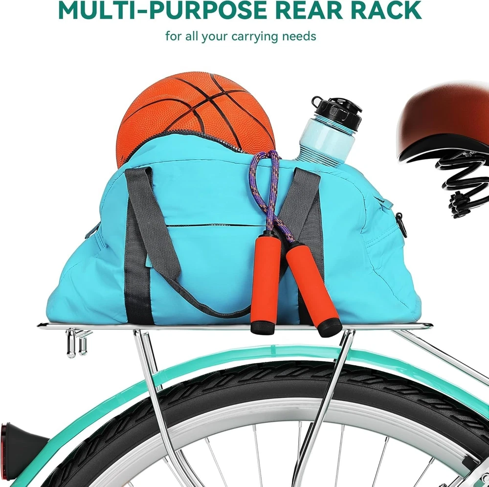 24 & 26 Inch Women's Beach Bike - Carbon Steel Frame & User-Friendly Assembly ‹ › ‹ › ‹ › ‹ › ‹ › ‹ › ‹ › ‹ › 24 & 26 Inch Women's Beach Bike -Carbon Steel Frame & User-Friendly Assembly Classic Beach Cruiser Bike: This cruiser bike for women boasts a sleek, curved frame design that artfully combines style and simplicity, creating a classic and understated appearance that's perfect for beachside strolls or casual rides. 7-Speed Design: Equipped with a 7-speed derailleur and user-friendly shifters. Effortlessly tackle long-distance journeys and moderate inclines. Versatile for various terrains, providing enhanced safety and control. Comfortable Riding Experience: Promotes a natural, relaxed riding position for ease and comfort. Adjustable seat height for personalized comfort levels. Tire: Features tires with double-layered rims and anti-slip treads. Reliable performance and enhanced stability for a smooth, enjoyable ride. Convenient Assembly: Majority of components pre-assembled for quick setup. Assemble your bike in approximately 30 minutes for a hassle-free experience. Why Choose Our Women's Beach Bike? This 24 & 26 Inch Women's Beach Bike is the epitome of elegance and functionality, merging a classic design with modern features that promise a superb biking experience. With a user-friendly assembly process, you can be riding the waves of tranquility in no time. Enjoy the sensation of cruising comfort with a bike that’s versatile enough to handle any of your adventures. Don't miss your chance to elevate your seaside lifestyle - order your Classic Beach Cruiser Bike today and embrace the joy of effortless riding! Shipping Free & Fast Shipping - We offer free shipping to most of the USA with a normal delivery time of 3-7 days. However, due to the current situation, additional delivery time (up to 3 weeks) may be required for some items. Alternative Carriers - We may use alternative carriers (e.g. USPS, FedEx, UPS, etc.) to ensure your package arrives safely and on time. Due to the use of multiple carriers, we are unable to provide a tracking number automatically. Handling Time - Orders are processed and shipped within 1-2 business days of receiving cleared payment. Shipping Restrictions - Shipping to Alaska, Hawaii, Puerto Rico, Guam, and other US territories may incur shipping charges or delivery restrictions. Please contact us before ordering, or your order can be refunded/cancelled. State Restrictions - There may be restrictions based on your state of purchase. For example, certain items may not be shipped to California due to state regulations. Contact for Tracking Updates - If you require tracking updates or have any concerns about the delivery of your order, please feel free to contact us, and we will be happy to assist you. Return 30-Day Hassle-Free Returns - We want you to be completely satisfied with your purchase. If you are not, you can return the item within 30 days of receiving it for a full refund or exchange. Easy Return Process - To start a return, simply contact us and we will provide you with a prepaid return shipping label and detailed instructions. Restocking Fee - There are no restocking fees for returns. However, the buyer is responsible for return shipping costs if the return is not due to a seller's error. Refund Processing Time - Refunds will be processed within 5 business days of receiving the returned item in its condition. Payment We accept all major credit cards, PayPal, and Apple Pay for your convenience. Your payment information is secure and encrypted to ensure a safe and seamless transaction. Please complete your payment within 3 days of purchase to avoid any delays in shipping. Feedback Your feedback is extremely important to us. We strive to provide the best products and customer service possible. If you are satisfied with your purchase, please take a moment to leave us a positive review. If you have any concerns or issues with your order, please contact us before leaving negative feedback. We are committed to resolving any problems and ensuring your satisfaction. Contact Us If you have any questions or concerns, please feel free to out to our customer support team. You can contact us through the eBay messaging system. We are available Monday to Friday, 9:00 am to 5:00 pm EST, and we will do our best to respond to your inquiry within 24 hours. Buy it now and enjoy a pleasant shopping experience! Frame Number: 197839622616 Item Height: Womens Cruiser Bike Item Length: Womens Cruiser Bike Item Width: Womens Cruiser Bike Unit Quantity: 1 Material: Carbon Steel Features: Adjustable Seat,Basket,Lock,Pump,Reflectors,Tool Kit Bike Type: Cruiser Frame Size: 24 in Wheel Size: 24 in Suspension Type: Dual Color: Mint Green Number of Speeds: 7 Speed Brake Type: Linear Pull Handlebar Type: Cruiser Bar Tire Type: Standard Tires Shifter Style: Trigger Shifter Gear Change Mechanism: Derailleur Gears Item Weight: 43 lb