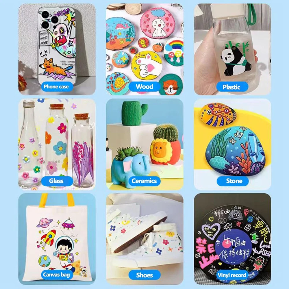 Store New Arrivals Add to Favorite View Feedback Contact Fast deliveries to the customer's home Quality customer service John Make the customers happy! 24 Assorted Colors Acrylic Markers Paint Pens Direct Liquid Ink, Water-Based Acrylic Markers, Soft Brush Tip, for Fabric, Canvas, Rock, Glass, Wood, Paper, DIY Crafts,School and Art Supplies Description Creative Brush Point Tip: Our acrylic paint markers come with a unique brush tip design. Direct liquid ink supply for smoother writing. Has a 1-5mm broad tip for large areas of painting and coloring, allowing you to create different strokes by changing the brush pressure, saving the trouble of changing nibs, and bringing more convenience to your creation, meet the different needs of professionals and amateurs. Vibrant Colors: This acrylic markers comes with 24 unique and vibrant color options to choose from, rich primary and complementary colors with no duplicates. A variety of colors allows you to let your imagination run wild and have unlimited creative possibilities Multi-Purpose: Enjoy creating art projects on a variety of surfaces, works for rock painting, ceramic, glass, wood, fabric, stone, metal, plastic, canvas, Christmas ornament, Halloween pumpkin painting, calligraphy, scrapbook, bullet journal, brush lettering, Christmas card, birthday gifts, greeting card, or any DIY crafts projects. Perfect Gift Idea: The use of simple methods, suitable for newcomers to play creative, perfect for those who want creative and unique gifts. Suitable for birthdays, Easter Day, Halloween, Christmas Day, Valentine's Day, Thanksgiving Day, New Year or special holidays gift. DIY unique gifts to bring color to your life and create decorations! Innovative Technology: Unlike traditional acrylic pens, this straight liquid water-based paint pen from EYEYE does not require any shaking or pressing of the nib to use. Simply remove the pen cap and start creating! Upgraded washable opaque water-based ink is odorless, waterproof, non-toxic, extremely smooth and precise control to cover other colors. Excellent coverage and perfect brightness, once the project is complete, the pigment stays bright as ever. Product Description Water Resistance Level Waterproof Item Weight 0.6 Pounds Number of Items 24 Color ASSORTED Pattern Solid Item Dimensions D x W x H 9"D x 6"W x 1"H Material Type Plastic Hand Orientation Ambidextrous Ink Color Assorted color Line Size 0.5 millimeters Theme paint Recommended Uses For Product Coloring, Drawing, Drafting, Painting Surface Recommendation Acetate, Cardboard,Ceramic,Glass,Leather,Metal,Paper,Plastic,Porcelain,Wood Drill Point Broad Additional Features Brush Tip Point Type Broad Style Name Contemporary Number of Pieces 24 ABOUT US We offer the best prices around on high quality products. Our E-store includes media such as books, movies, music and games while offering electronics, toys, sporting apparel, clothing, tools, general home, garden items and more. SHIPPING We are always working hard to ensure your package arrives as soon as possible. Please understand that some factors like weather, high postal traffic, and the performance of shipping companies are outside of our control. We offer free shipping to the lower 48 states and ship within 2 business days of payment, usually sooner. We do not accept P.O. Boxes. Please provide a physical address. For shipping outside of the continental USA, we only use eBay's Global Shipping Program. The item is shipped to KY and then sent to the rest of the world. International customers are responsible for all duties and taxes. Continue to 'check out' to calculate costs for shipping the item to your country. Messages regarding eBay's Global Shipping Program MUST be directed at eBay EXCLUSIVELY. RETURNS We offer a 30-Day Return Policy on items in which you are not completely satisfied with. You have the option of a full-refund or an exchange of the item. No returns are available on items shipped outside of the USA PAYMENT We accept PayPal. CONTACT US This page content is yet to come Please ad us to your favorite seller and visit again later Thank You CUSTOMER SATISFACTION We try our very best to make sure every customer is completely satisfied. If there's a problem, message us! We're happy to help. WE ACCEPT