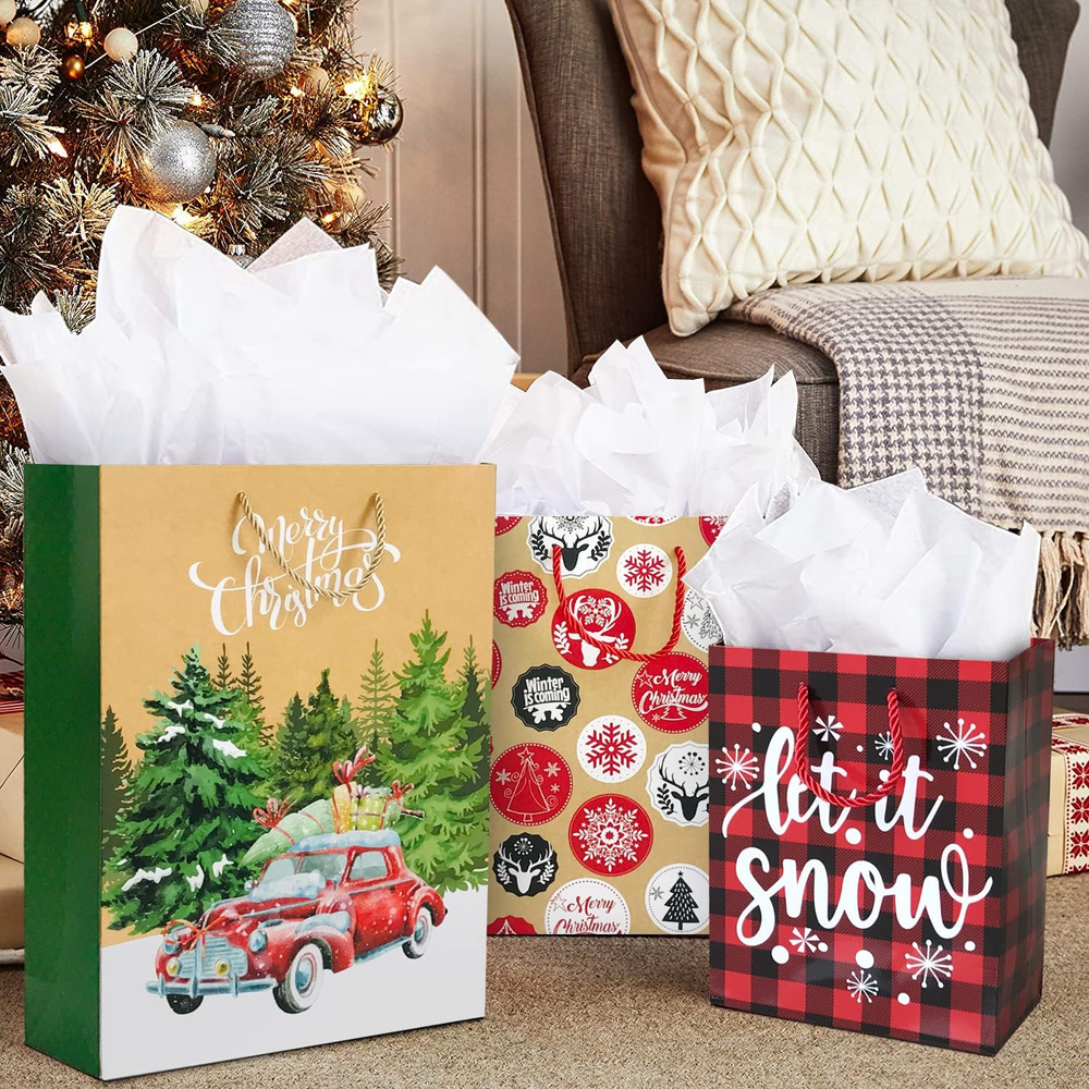 Store New Arrivals Add to Favorite View Feedback Contact 24 Christmas Gift Paper Bags Bulk with Handles and 60 Count Christmas Gift Tags-Assorted Sizes Set for Wrapping Xmas Holiday Presents(6 Jumbo,6 Large,6 Medium,6 Small) Description Unit Count 1.0 Count Number of Items 24 Color giftbags1 Pattern Christmas design Product Dimensions 12.4"L x 4.5"W x 17.5"H Material Paper Country of Origin China Item Weight 4.85 pounds Theme xmas Occasion Christmas Included Components Gift paper bags and tags This Assorted VALUE PACK includes 24 Different Themed Christmas Gift paper bags and 60 delicate Christmas Gift Tags, perfect for Xmas present wrapping. Our Xmas Gift Sacks Bulk Includes 6 Jumbo 6 Large 6 Medium and 6 Small Gift Bags! This set includes more large bags than other such similar sets. Jumbo Bag measures: 12.4" wide x 17.5" tall x 4.5" deep. Large Bag measures: 10.5" wide x 13" tall x 5.25" deep.Medium Bag measures: 7" wide x 9" tall x 4" deep. Small Bag measures: 4.7" wide x 7"tall x 2.5" deep. 60 count delicate Christmas gift tags are included ,which is one of the most popular christmas gift tags .it's really a Value Pack.Get the most out of your money! Be Made of white cardboard, good quality and many cute Christmas holiday designs are Included Be popular in children and adults.Bring more happiness for your holiday! Product Description ABOUT US We offer the best prices around on high quality products. Our E-store includes media such as books, movies, music and games while offering electronics, toys, sporting apparel, clothing, tools, general home, garden items and more. SHIPPING We are always working hard to ensure your package arrives as soon as possible. Please understand that some factors like weather, high postal traffic, and the performance of shipping companies are outside of our control. We offer free shipping to the lower 48 states and ship within 2 business days of payment, usually sooner. We do not accept P.O. Boxes. Please provide a physical address. For shipping outside of the continental USA, we only use eBay's Global Shipping Program.The item is shipped to KY and then sent to the rest of the world. International customers are responsible for all duties and taxes. Continue to check out in order to calculate costs for shipping the item to your country. Messages regarding eBay's Global Shipping Program MUST be directed at eBay EXCLUSIVELY. RETURNS We offer a 30-Day Return Policy on items which you are not completely satisfied with. You have the option for a full-refund or an exchange of the item. No returns are available on items shipped outside of the USA. PAYMENT We accept PayPal. CONTACT US This page content is yet to come Please ad us to your favorite seller and visit again later Thank You CUSTOMER SATISFACTION We try our very best to make sure every customer is completely satisfied. If there's a problem, message us! We're happy to help. WE ACCEPT Copyright © 2021 AutoDS. | All Rights Reserved
