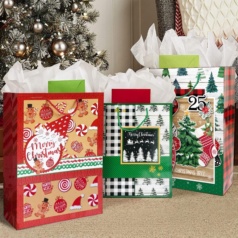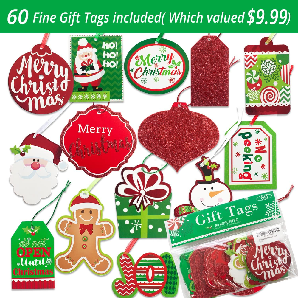 24 Christmas Gift Bags Bulk with Handles & 60 Holiday Gift Tags Set