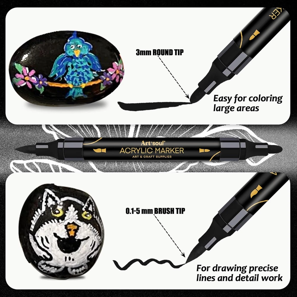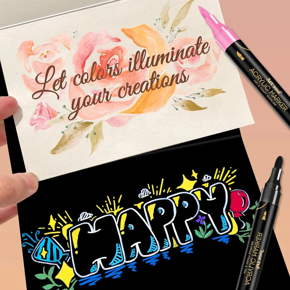 Store New Arrivals Add to Favorite View Feedback Contact Fast deliveries to the customer's home Quality customer service John Make the customers happy! 24 Colors Acrylic Paint Pens-Dual Tip Markers, Vibrant, Long Lasting Colors That Dry Quickly, Ideal for Canvas, Paper, Glass, Ceramic, Wood, and Rock Description Versatile Dual-Tip: The 0.1-5mm brush tip is suitable for detailed drawing, offering excellent precision and detail, whereas the 3mm round tip is ideal for covering large areas efficiently with an even coating. This design perfectly combines detail and breadth, providing limitless possibilities for your artistic creations Long-lasting Brilliance: Each brush is crafted with premium pigments to ensure vibrant and enduring colors, maintaining excellent color saturation on various surfaces, providing a lasting visual feast for your artistic creations Versatile Application: Art+soul 24 Colors Premium Acrylic Paint Pens can be used on a variety of materials including canvas, paper, glass, ceramics, wood, stone, Plastic, Metal and Textile ect. Whether you're decorating indoors or adding personalized designs to outdoor items, they allow you to effortlessly achieve a variety of artistic effects Cost-effective: Combining two different tips in one pen saves space and reduces the cost and hassle of purchasing multiple types of tips. This design enhances creative flexibility, allowing artists to switch between different tips on the same pen for experimenting freely and expressing ideas Ideal Gift Choice: Whether it's a birthday, holiday, or any special celebratory occasion, this is a superb gift choice for you, your family, or friends who love art, enjoy creativity, or are passionate about DIY. This gift not only enriches daily life but also inspires limitless artistic exploration and creative enjoyment! Product Description 24 Colors Premium Acrylic Paint Pens Whether you're drawing detailed patterns or enjoying casual doodling, choose our acrylic markers to make every stroke display stunning color effects, allowing your creativity to shine in brilliant hues! Strokes as Smooth as Silk The pen strokes are like flowing silk, sliding lightly and unhindered across the paper, bringing an extremely smooth writing experience. Vivid and Vibrant Colors Colors are vivid and striking, making each stroke lively and deep, perfectly showcasing the artist's creativity and style. Excellent Coverage Whether on black paper or absorbent surfaces, acrylic ink quickly penetrates and covers evenly. Creative Freedom The versatility of acrylic markers on various surfaces provides artists with greater creative freedom and flexibility. Item Weight 11.3 ounces Number of Items 24 Color Multicolor Material Type Plastic Line Size 0.1-0.3 Millimeters Ink Color Multicolor Recommended Uses For Product Drawing, Coloring, Writing, Painting Point Type Broad Product Dimensions 12.6 x 0.55 x 6.1 inches ABOUT US We offer the best prices around on high quality products. Our E-store includes media such as books, movies, music and games while offering electronics, toys, sporting apparel, clothing, tools, general home, garden items and more. SHIPPING We are always working hard to ensure your package arrives as soon as possible. Please understand that some factors like weather, high postal traffic, and the performance of shipping companies are outside of our control. We offer free shipping to the lower 48 states and ship within 2 business days of payment, usually sooner. We do not accept P.O. Boxes. Please provide a physical address. For shipping outside of the continental USA, we only use eBay's Global Shipping Program. The item is shipped to KY and then sent to the rest of the world. International customers are responsible for all duties and taxes. Continue to 'check out' to calculate costs for shipping the item to your country. Messages regarding eBay's Global Shipping Program MUST be directed at eBay EXCLUSIVELY. RETURNS We offer a 30-Day Return Policy on items in which you are not completely satisfied with. You have the option of a full-refund or an exchange of the item. No returns are available on items shipped outside of the USA PAYMENT We accept PayPal. CONTACT US This page content is yet to come Please ad us to your favorite seller and visit again later Thank You CUSTOMER SATISFACTION We try our very best to make sure every customer is completely satisfied. If there's a problem, message us! We're happy to help. WE ACCEPT