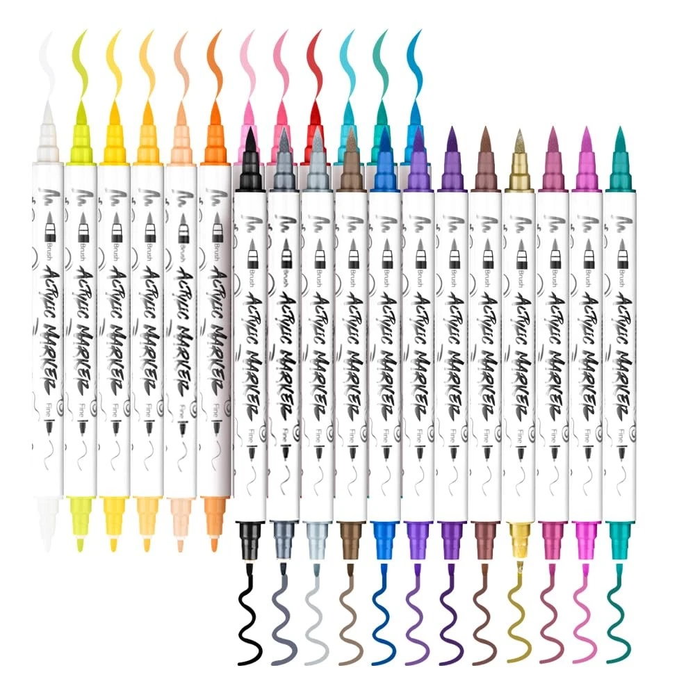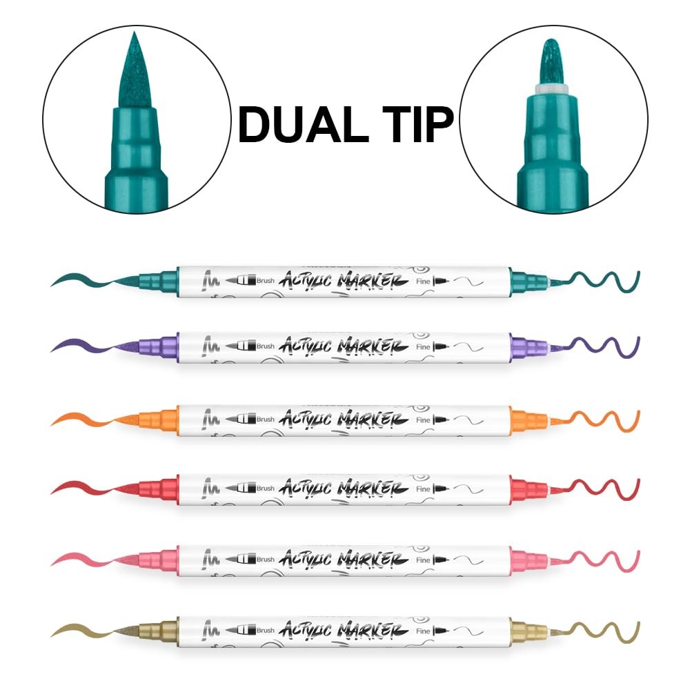 Shuttle Art 36 Colors Dual Tip Acrylic Paint Markers, Brush and Fine Tip for ...