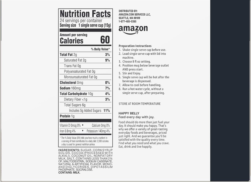 24 Count Milk Chocolate Hot Cocoa Pods – Perfectly Brewed Every Time ‹ › ‹ › ‹ › ‹ › ‹ › ‹ › ‹ › ‹ › ‹ › ‹ › 24 Count Milk Chocolate Hot Cocoa Pods Perfectly Brewed Every Time Indulge Your Senses: 24 Milk Chocolate flavored single serve hot cocoa cups for instant bliss. Delivering rich, creamy flavors with every sip—perfect for warming your heart on a chilly day. Compatible with both 1.0 and 2.0 K-Cup brewers for unmatched convenience. For best results, remember to shake the cup before brewing to enhance the sumptuous chocolate infusion. Contains milk, ensuring a luscious, velvety texture that's simply irresistible. Why Choose ? Previously a Solimo product, enjoy the same exceptional quality and size now under the brand. Our Milk Chocolate Flavored hot cocoa pods provide a delightful experience that takes your cocoa break to a whole new level. Whether it's a cozy night in or a gathering with friends, these single-serve pods ensure each cup is brewed to perfection—because you deserve the best. Make your pause in the day a moment of indulgence. Simply insert a pod, brew, and savor the rich flavor that warms the soul. Transform every sip into a chocolatey escape with . Shipping Free & Fast Shipping - We offer free shipping to most of the USA with a normal delivery time of 3-7 days. However, due to the current situation, additional delivery time (up to 3 weeks) may be required for some items. Alternative Carriers - We may use alternative carriers (e.g. USPS, FedEx, UPS, etc.) to ensure your package arrives safely and on time. Due to the use of multiple carriers, we are unable to provide a tracking number automatically. Handling Time - Orders are processed and shipped within 1-2 business days of receiving cleared payment. Shipping Restrictions - Shipping to Alaska, Hawaii, Puerto Rico, Guam, and other US territories may incur shipping charges or delivery restrictions. Please contact us before ordering, or your order can be refunded/cancelled. State Restrictions - There may be restrictions based on your state of purchase. For example, certain items may not be shipped to California due to state regulations. Contact for Tracking Updates - If you require tracking updates or have any concerns about the delivery of your order, please feel free to contact us, and we will be happy to assist you. Return 30-Day Hassle-Free Returns - We want you to be completely satisfied with your purchase. If you are not, you can return the item within 30 days of receiving it for a full refund or exchange. Easy Return Process - To start a return, simply contact us and we will provide you with a prepaid return shipping label and detailed instructions. Restocking Fee - There are no restocking fees for returns. However, the buyer is responsible for return shipping costs if the return is not due to a seller's error. Refund Processing Time - Refunds will be processed within 5 business days of receiving the returned item in its condition. Payment We accept all major credit cards, PayPal, and Apple Pay for your convenience. Your payment information is secure and encrypted to ensure a safe and seamless transaction. Please complete your payment within 3 days of purchase to avoid any delays in shipping. Feedback Your feedback is extremely important to us. We strive to provide the best products and customer service possible. If you are satisfied with your purchase, please take a moment to leave us a positive review. If you have any concerns or issues with your order, please contact us before leaving negative feedback. We are committed to resolving any problems and ensuring your satisfaction. Contact Us If you have any questions or concerns, please feel free to out to our customer support team. You can contact us through the eBay messaging system. We are available Monday to Friday, 9:00 am to 5:00 pm EST, and we will do our best to respond to your inquiry within 24 hours. Buy it now and enjoy a pleasant shopping experience! Expiration Date: 365 days Calories per 100 g/mL: Not Provided Course: Beverage Number in Pack: 24 Count Style: Pods Unit Quantity: 24 count Compatibility: Keurig,Keurig 1.0,Keurig 2.0 Flavor: Milk Chocolate Food Specifications: Kosher Allergens: Milk Product: Coffee Pod & Capsule Type: Hot Cocoa Calories per Serving: Not Provided Number of Servings: 24 Serving Size: 1 Pod Item Weight: 1.04 pounds