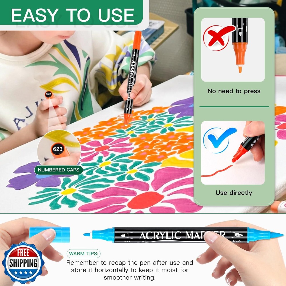 12 Dual Tip Acrylic Paint Markers in 12 Vibrant Permanent Colors
