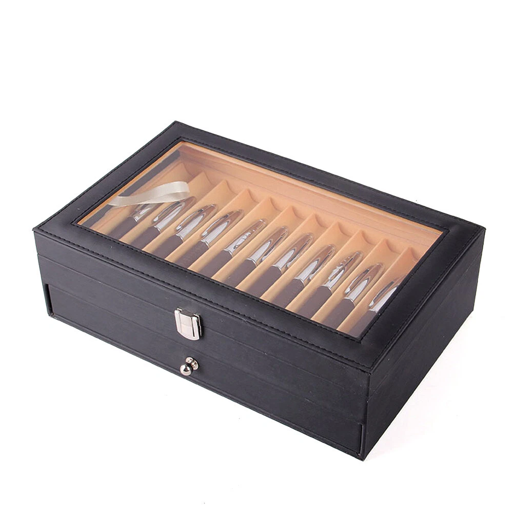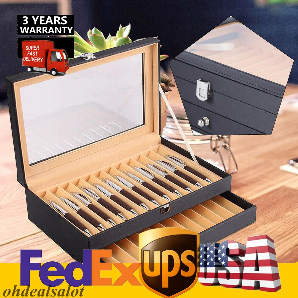 Application The pen display box looks neat and professional on a desk, dresser, or nightstand. Or it could be a nice present for your best friends! Specification Colors: Black Outer Box Material: PU Leather Lining Material: Flannel Number of Grids: 24 Net Weight: 1.2kg/2.6lbs Gross Weight: 1.5kg/3.3lbs Product Size: 30.5x 20x 9.5/12"x 7.9"x 3.74" Package Size: 31x 20x 10cm/12.2"x 7.9"x 3.9" Package Included 1 x Pen Display Box Notes 1. Please note that the pen is not included. 2. Please allow the slight color difference caused by the shooting light and 1-3 cm error due to manual measurement, and make sure you do not mind before ordering. 24 Fountain Pen Leather Display Box Holder Organizer Storage Collector Case NEW Description We present a finely designed pen display box with adequate storage for 24 exquisite designed pens for the passionate pen collector. This leather pen display box may be used to show, store, and preserve your vast collection of pens. The pen display box looks neat and professional on a desk, dresser, or nightstand. Or it could be a nice present for your best friends! Key Features Large Capacity: It can protect, preserve, and organize up to 24 of your best pens. Each compartment is large and has curved grooves that securely hold pens of different kinds and sizes. Ideal Present: The pen display box can be used as a gift for any occasion. It is a wonderful present for your husband, wife, mother, father, friend, or pen collector. Luxury Style: The attractive leather pen display box protects and provides a luxury feel to pens while enabling you to keep and display your favorite pens in one handy and appealing location. Highly Protective: Its curved slots keep each pen fixed and protect pens from scratching and rubbing. High-quality Material: The pen display box is made of PU and flannel, which makes it resistant to deformation, corrosion, and fading, as well as being fashionable and long-lasting. Exquisite Construction : The 2-layer case with a handy drawer is used for maximum space efficiency. The skylight design allows for easy access and a spectacular presentation. Easy Storage: This pen display box can organize almost all your pens. You no longer have to find the pen you need in a cluttered pile of pens. Easy to Clean: All you have to do is wipe it with a clean towel, and it'll be as good as new. Details Transparent Lid: It has a clear transparent glass top lid that allows for easy observation of the pens and also keeps them dust-free. High-grade Hardware: Its latches and drawer handles are made of high-grade hardware materials, which are bright, resistant to rust and fading. Tight Thread: Tightly stitched threads make this pen display box more beautiful and sturdy. High-quality Flannel: This pen display box is lined with premium flannel. It's non-slip and anti-corrosion, which can protect your pen in a better way. Multi-Compartments: This pen display box has 2 layers and 24 slots to keep your pens in order. It also has a beautiful and practical design. Application The pen display box looks neat and professional on a desk, dresser, or nightstand. Or it could be a nice present for your best friends! Specification Colors: Black Outer Box Material: PU Leather Lining Material: Flannel Number of Grids: 24 Net Weight: 1.2kg/2.6lbs Gross Weight: 1.5kg/3.3lbs Product Size: 30.5x 20x 9.5/12"x 7.9"x 3.74" Package Size: 31x 20x 10cm/12.2"x 7.9"x 3.9" Package Included 1 x Pen Display Box Notes 1. Please note that the pen is not included. 2. Please allow the slight color difference caused by the shooting light and 1-3 cm error due to manual measurement, and make sure you do not mind before ordering. Payment Delivery details Terms of sales About us Contact us Payment We accept ebay payment 。 Fees such as import duties, taxes are not included in the item price or shipping costs. These charges are the buyer's responsibility. Delivery details Shipping: 2-9 working days to: USA Terms of sales We maintain high standards of excellence and strive for hundred percent customer satisfaction. Feedback is very important to us. We hope that you contact us immediately before you give neutral or negative feedback, so that we can address your concerns. It is impossible to address issues if we do not know about them! About us Your satis faction is our ultimate goal. We work hard to earn your trust and future business. Our certified technicians have tested each item before shipping. The unit comes with 1 year limited warranty on all manufacturing defects. a) If you receive a defective item, you may return it or ask for a discount. Please contact us within 14 days after you receive the package. b) What you returned must be intact and in its original packaging as re? u. Customer is responsible for shipping costs of the returned item. c) We will cover the cost of shipping back t with the shipping rate indicated in the registration page. We will send you a new unit or refund the full payment you paid. Thank you. Contact us Business Hour Business Hour: Monday To Friday: 8:30 AM to 5:00 PM (Beijing China time) Due to time zones, our reply to your questions may not be immediately. But within above working time, we will reply your email within 24 hours. If it's non-workdays, please kindly be patient and wait till Monday. Please contact us with ebay message. Please feel free to contact us if you have any questions. Monday To Friday: 8:30 AM to 5:00 PM (Beijing China time) Due to time zones, our reply to your questions may not be immediately. But within above working time, we will reply your email within 24 hours. If it's non-workdays, please kindly be patient and wait till Monday. Please contact us with ebay message. Please feel free to contact us if you have any questions. shipping notice Can not ship to Puerto Rico,Alaska/Hawaii Colors Black Material PU Leather+Flannel Length 30.5cm/12.00" Width 20cm/7.87" Height 9.5cm/3.74"