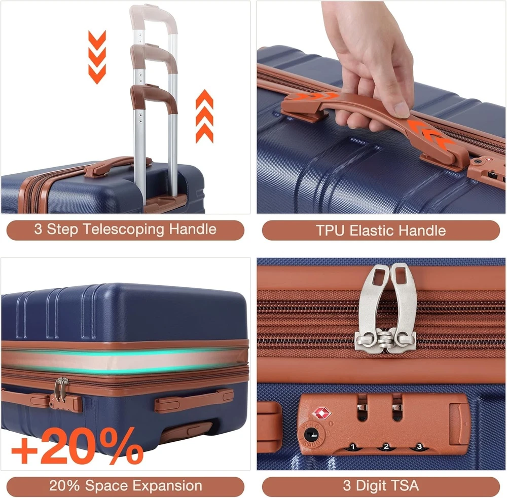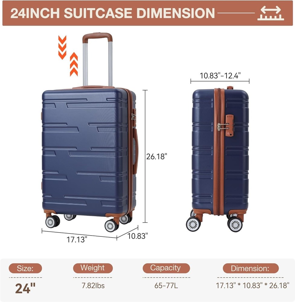 24" Hardside Carry On Luggage w/Spinner Wheels, Hardshell Suitcase TSA Lock Brand New 24 inch Expandable Hard Shell Carry On Luggage with Spinner Wheels, Hardside Carry On Suitcase with Tsa Lock, Lightweight Hardshell Suitcase,Blue Feature ENHANCED SECURITY TSA LOCK - The hardshell suitcase comes with a built-in TSA lock on the side, thus ensuring you are safer when traveling. This travel companion is equipped with TSA-approved dual-side locks for securing both the main compartment and the laptop compartment. As it meets airline standards, along with durable and reliable zippers, it insures the safety of your belongings during travel 360° DOUBLE SPINNER WHEEL - The suitcases with wheels features quiet double 360° spinner wheels. The uniquely shaped multi-directional silent wheels not only make no noise when rotated but also are more durable in structure. The twin 360° swivel wheels roll smoothly over various surfaces such as carpet, uneven pavement and even gravel, and handle bumps and tight corners with ease CONVENIENT INTERNAL STRUCTURE - The hard side suitcase carry on has multiple storage compartments, making packing easy. The spacious main compartment is equipped with cross straps, facilitating the easy storage of items. There is a waterproof compartment for toiletries and a U-frame zippered compartment for privacy LUGGAGE DIMENSIONS - With an overall dimension of 17.13x10.83x26.18 inches, a volume of 65-77 liters and weighing only 7.82 pounds. Ideal for business trips, leisure vacations, and urban explorations VERSATILE EXPANDABLE DESIGN - The ergonomic telescopic handle, made of durable iron, adjusts in three stages for comfort at different heights. The carry-on hardside can increase its storage space by an additional 20% and offers effortless expansion. It expands 2 inches in width, adding an extra 12L packing capacity to the carry-on suitcase, from 65L to 77L. Made of ABS material, it is a durable and lighter hard shell with a textured finish to prevent scratches Payment Delivery details Terms of sales About us Contact us Payment We accept Payoneer only. All major credit cards are accepted through secure payment processor PayPal. Payment must be received within 7 business days of auction closing. If you have bought multiple items from me, you can send me one payment for all the items instead of paying for them individually. When you click the Pay Now button, eBay will automatically determine if there are other items you have won or purchased from me and will combine them for your review. NOTE: Import duties, taxes and chargers are not included in the item price or shipping charges. These charges are the buyer's responsibility. Please check with your country's customs office to determine what these additional costs will be prior to bidding buying. Delivery details 1. We will delivery out at the handing time when we receive the payment. 2. The delivery time is 3-5 business days to US by usually time.The parcel maybe delay 1-2day of the weekend.Due to the bad weather,Holidays,Hot Season ect.the parcel maybe delay,If you have any problems,mssage us,we will try our best to solve it. 3. We ship to your eBay address. Please make sure your eBay address is correct before you pay. 4. If you want to change the shipping address,message us before our send out. 5. We cannot deliver your order if your state is PR. Terms of sales 1. If you donot receive the items at the delivery time,the parcel has broken/missing,Please message us before you open case/return,we will try our best to solve it. 2. We offer a 30 day return policy from checkout winning date. 3. An RMA number is required for all returns. Message us for return instructions. Items Returned without a RMA number will not be processed. 4. Items defective upon receipt must be packaged in their retail packaging as if new and returned with a detailed description of the problem. 5. Return shipping fees are not refundable. We reserve the right to decline any returns if the above guidelines are not followed. About us If you are not satisfied with the item for any reason, please do not quick to leave negative/neutral feedback even open request and case without any communication with us. We devote ourselves making EVERY CUSTOMER in Satisfactory and resolve any problem. Thank you for your understanding and recognition,we are always leave positive feedback to all our customers. Contact us All replies will be sent to your email box, if you do not get response within 24 hours (Sat. & Sun. excluded) please check your eBay My Messages in case that our emails will be filtered automatically by your settings. Brand Unbranded Color Blue Features Hardcase, Lightweight, Wheels/Rolling Gender Unisex Adult Material ABS Plastic Size 24" Type Luggage Sets