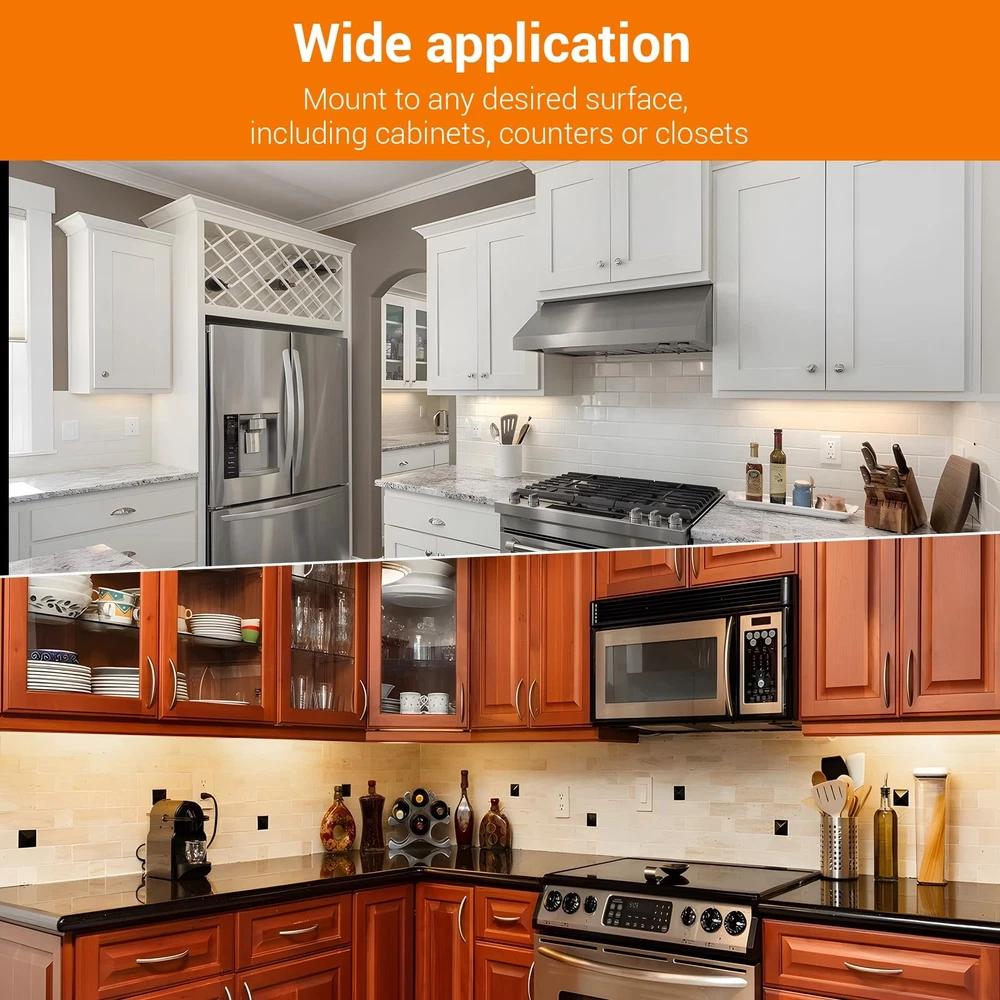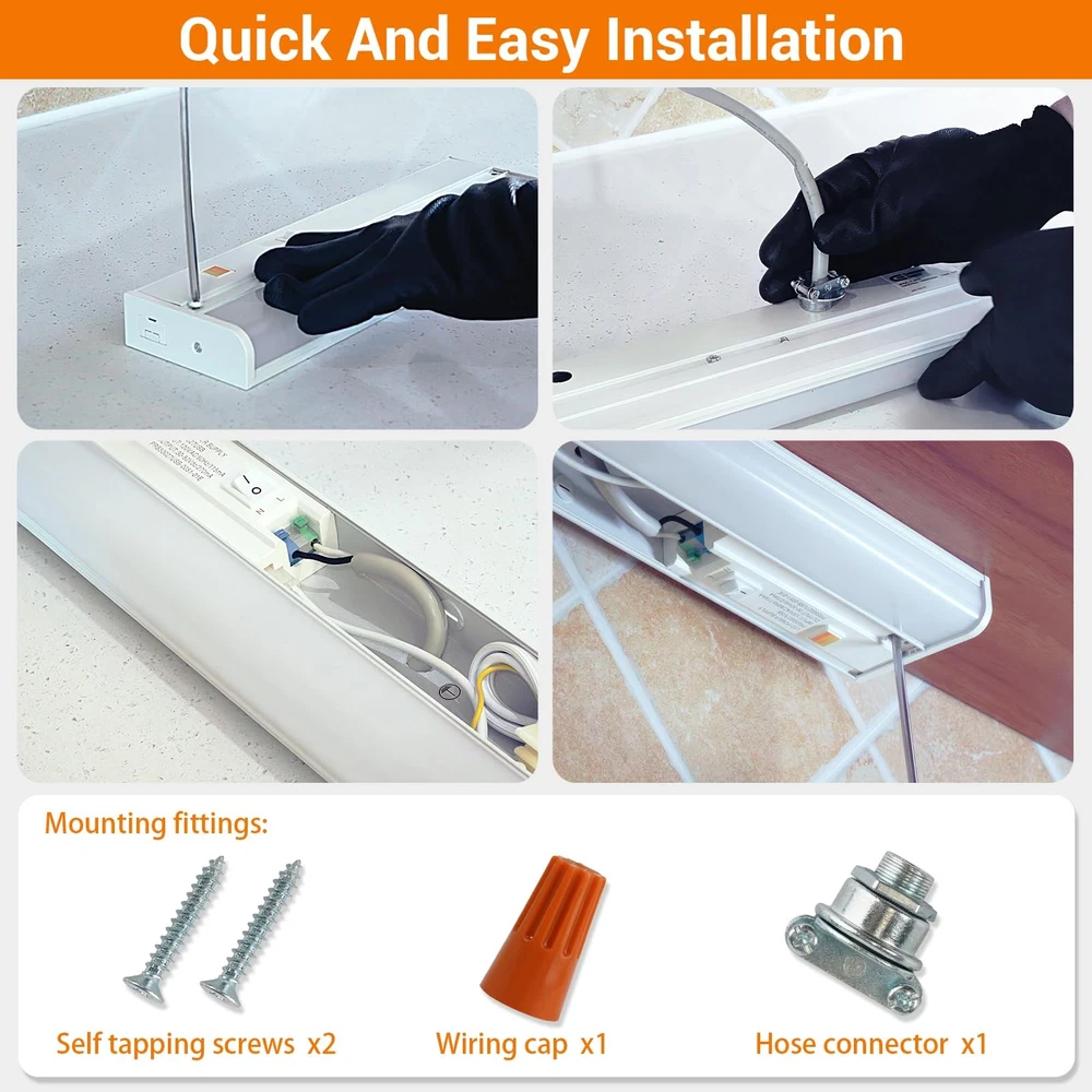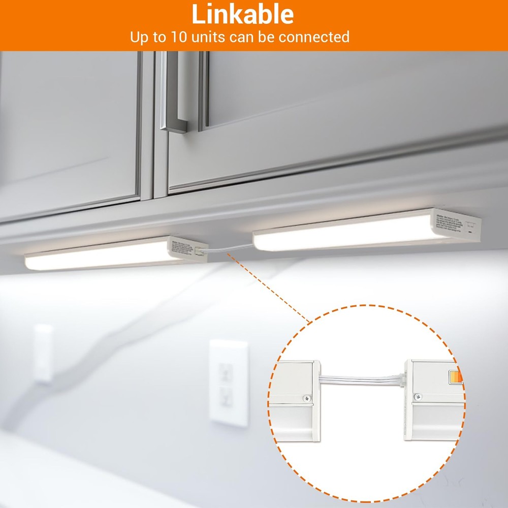 12inch led direct wire linkable under-cabinet light integrate dimming, color matching, and connectable functions. Easy-to-install wiring methods and bright light allow you to experience different services Product Features: 3 color temperatures options: W arm white(2700K),bright white (4000K)and neutral white(3500K) Direct wire installation: Quick & Easy Installation Quality materia: Quality plastic lamp shade & metal base,stylish appearance,wear resistant to dirt,suitable for kitchen,easy to clean High lumen and diffused light output: LED Brightness:≥1270 lumens Linkable: Up to 10 units can be connected 10%-100% Stepless dimming: Captive mountingIn-wall dimmer compatible 3 Color Temperature& Brightness Adjustable:The led under cabinet light adjust color of light with Integrated switch,2700K/4000K /3500K selectable.10%-100% stepless dimming,compatible with most household dimmers.CRI 90, providesoft light without glare Linkable:Direct wire linkable under cabinet lights can be used alone or connected to multiple units(If you buy two packs or more). Up to 10 units can be connected (each set includes accessories and connecting cables) 1270 Lumens&ETL Listed: Bright enough to fill your kitchen with brightness,quality is trustworthy. With a long service life of 50,000 hours, this kitchen under cabinet lighting is a good partner for daily household use Quick & Easy Installation:24"hardwird under cabinet light,captive mounting screws for quick and easy installation ,perfect for 30" cabinet widths.This under counter light fixtures equipment with wide body, long lasting metal base with frost lens Connection line can be stored: When installing, according to the length of the cabinet, the excess length of the connection line can be received inside the lamp, so that the cabinet becomes more concise Wide Application:3 color temperature adjustable under cabinet lighting can be widely used under various cabinets, especially suitable for under cabinets, bringing you a different use experience