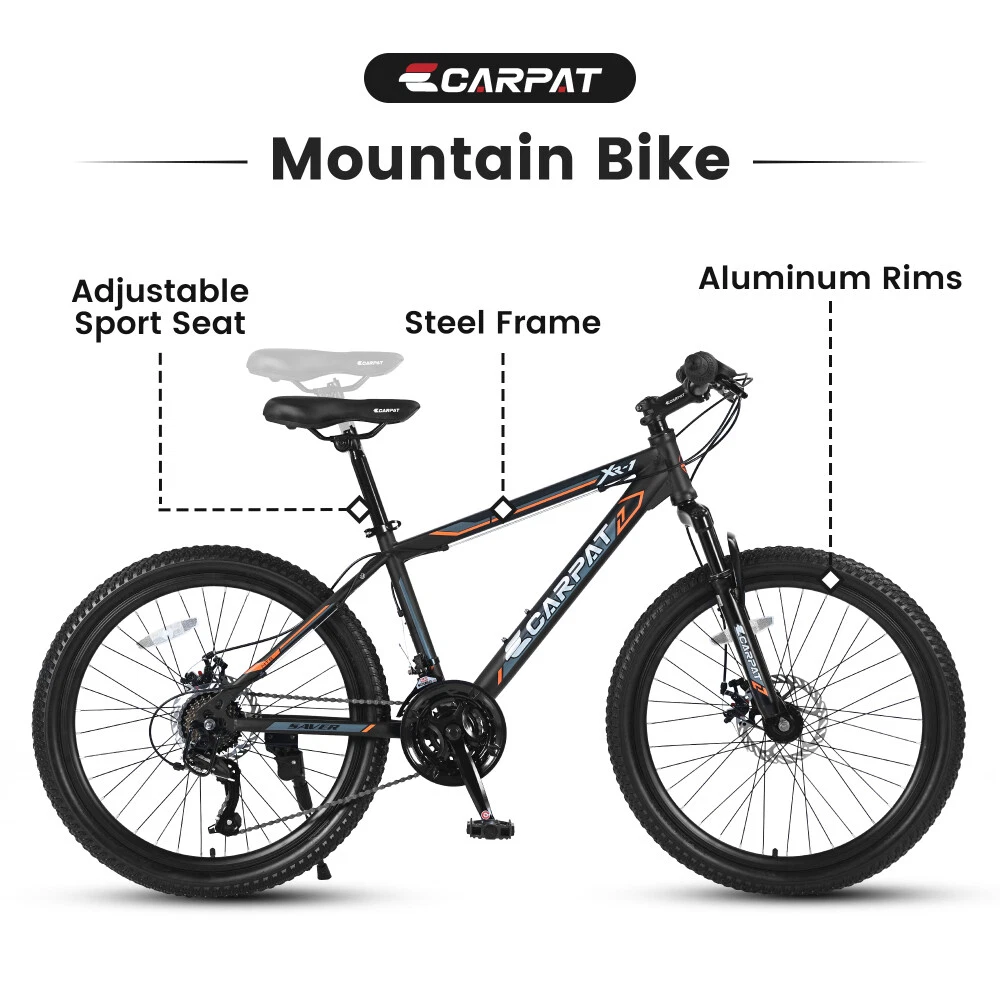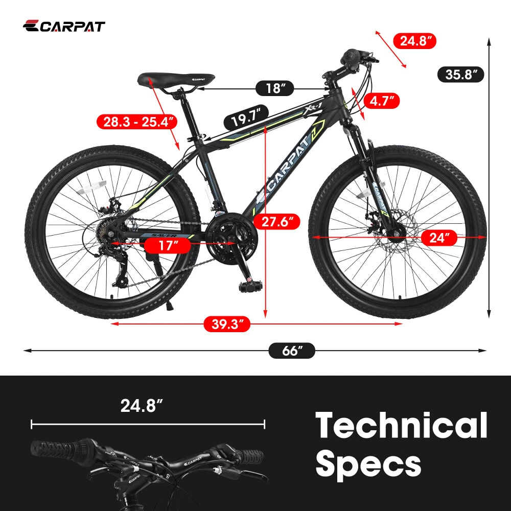 [Impressively Sophisticated Frame]- The boys girls mountain bikes offer up-to-date geometry and great parts for less than a grand. With a high-strength fork, dropper post, and head angle, the Elecony is stable and capable,-this bike is ready to get rowdy. With a high-strength fork, dropper post, and head angle, the Elecony is stable and capable,-this bike is ready to get rowdy. [21 Speed Shimano Drivetrain]- Shimano handle allows teens to switch gears with smoothness. The positioning is accurate, and silky gear shifts without stalling. These are the mountain trail bikes for someone looking for a capable mountain bike for less than a grand, or a durable commuter. [Great Braking System]- These mountain bikes also has dual disc brakes ich offer great power and a smooth feel, and a suspension fork to absorb bumps. It's a capable off-road bike with stability first handling. [Great Tire Performance]- If you prefer traction and float, the Elecony MTB bikes are perfect for the most demanding of applications. Elecony MTB bikes for teenagers gets 24 inch wheels wrapped with 1.75 inch wide tires for more traction and better flotation and a more sure-footed and stable feel. [Less To Go Wrong]- Hardtails are lighter. Hardtails have less to go wrong or require servicing. Hardtails are easier to clean. Hardtails can be faster and more fun on smoother.