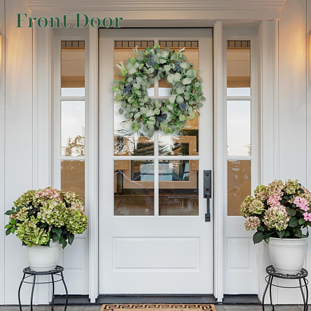 Eucalyptus Wreath for Front Door, 24 Inch Eucalyptus Wreath with Olive Leaves and Berries All Year Round, Handmade Green Spring Summer Wreaths for Front Door Indoor Outdoor Wedding Holiday for all seasons 【Large Size】 Fully expanded eucalyptus wreath, the inner diameter is about 30cm/12 in, the outer diameter is about 61cm/24 inches. To prevent damage to the 24 inch eucalyptus wreath during shipping, the summer wreath is tightened. Please follow our instructions to fluff the leaves before hanging it. If you want to it temporarily, the leaves can be easily tightened so you can fit it into a smaller space. 【Lifelike】 This Eucalyptus wreaths for front door is made of more than 3 types of eucalyptus leaves with different colors, and some olive leaves, and it is additionally dotted with blue/white berries, which makes it look more vibrant and natural. Front door wreaths for all seasons keeps blooming and could be used for a long time. 【Beautiful All Year Round】 The eucalyptus leaves are silk so they never fall, the berries are foam so they never rot. No maintenance, no management required. Eucalyptus year round wreaths for front door looks full and fresh every day. 【Add Something You Like】 Vine Branch instead of plastic, which is convenient for you to snap other decoration to the eucalyptus wreath. You can add maple leaves and pumpkins to eucalyptus wreath in autumn, and you can add bells and stars at Christmas. You will find that your wreath is most unique when you design it yourself. 【Application】 Year round wreaths for front door to welcome guests, hang it above your fireplace, or on a living room wall to brighten up your home. This 24inch summer wreath is also suitable as wedding wreath, welcome wreath, spring wreaths, eucalyptus Wreath for sitting room, wedding scene, wedding car, photography background etc. It also makes a great gift for weddings, housewarming, Mother's Day,birthday and other holidays. 【Our 】 We are a company with years of professional experience in designing, developing and manufacturing indoor and outdoor decorative artificial plants with the best quality. Because the 24 inch eucalyptus wreath is handmade, the size will vary slightly. If there are any problems with our products, please 【】 at the first time, we will definitely give a perfect answer.