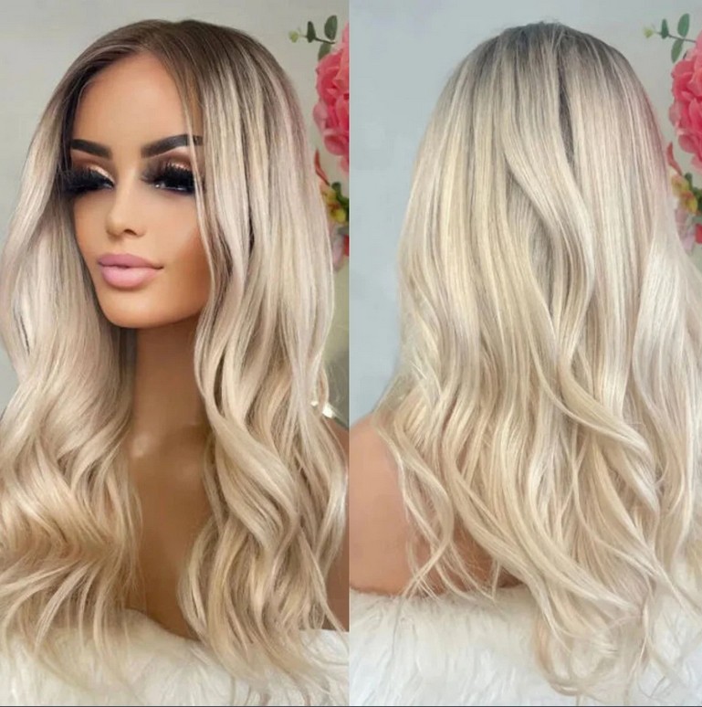 $ 163.41Ombre Highlight Platinum Blonde Wave 13x4 Lace Front Wig 100% Human Hair Wig