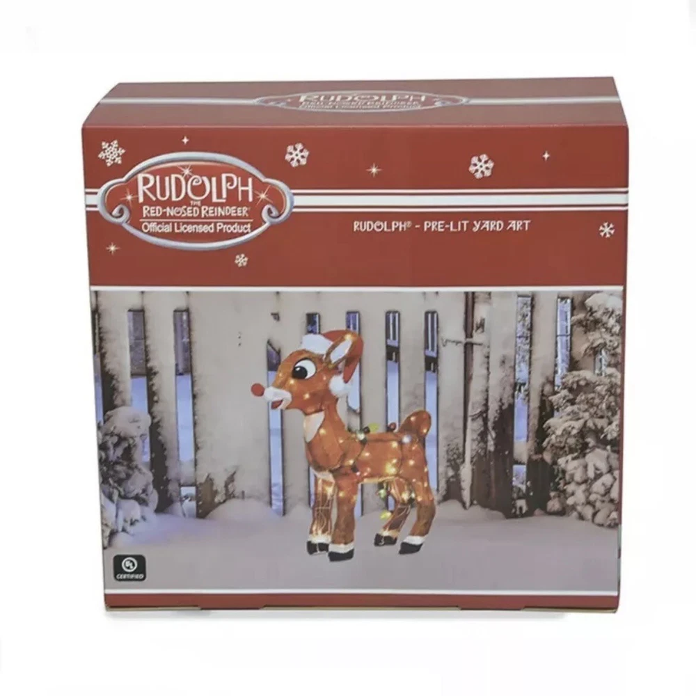 24 Inch Rudolph the Red Nosed Reindeer Yard Art Pre Lit Outdoor Christmas Decor