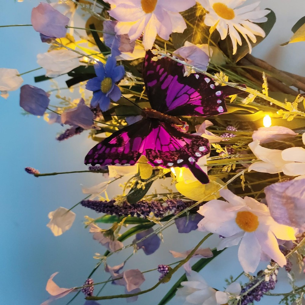 Absolutely love this wreath! The vibrant daisies and lavender give my front door a fresh, cheerful look. The included butterflies add a playful touch, and I adore how they can be moved around. The LED lights create a cozy glow in the evenings—perfect for summer nights. The 24-inch size is just right, making a statement without being overwhelming. High-quality and easy to arrange—definitely worth it!