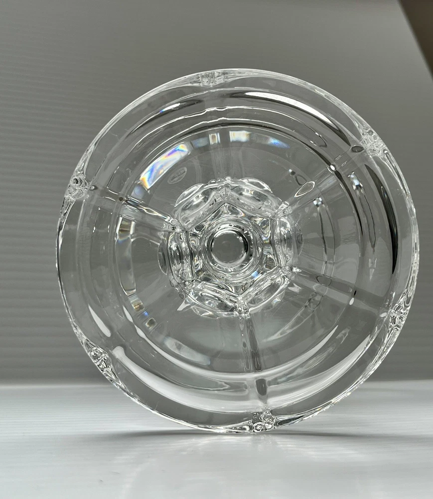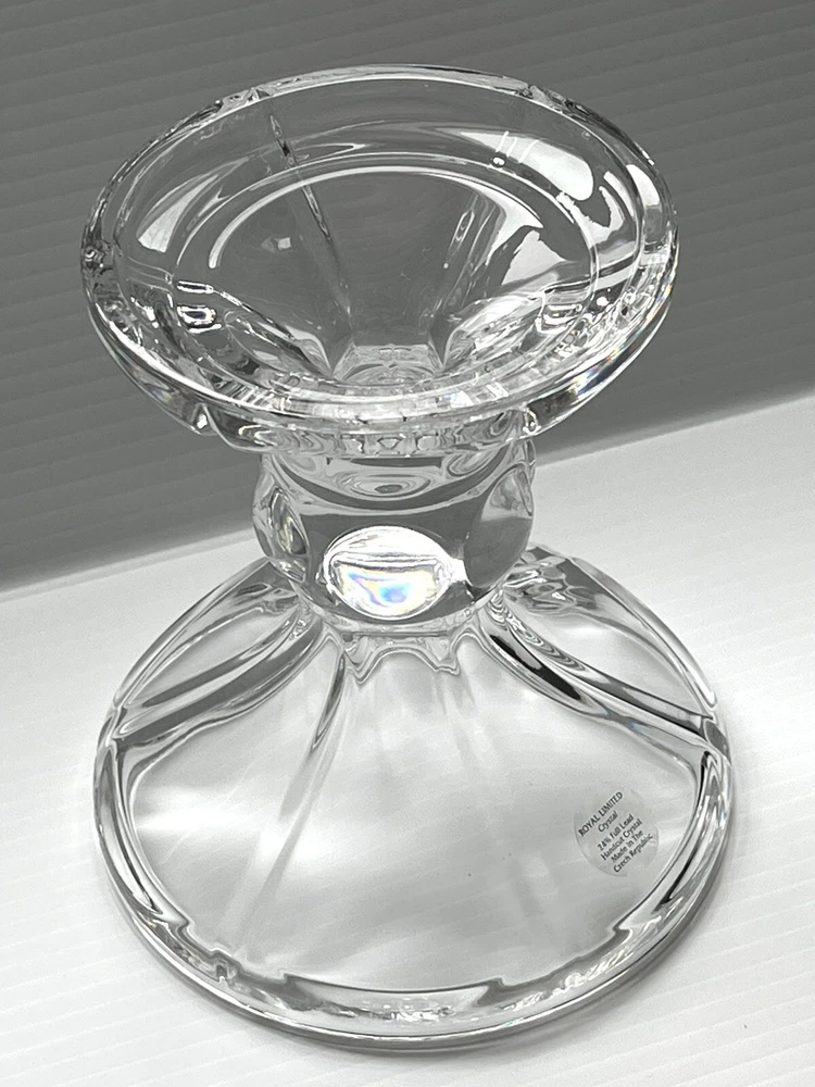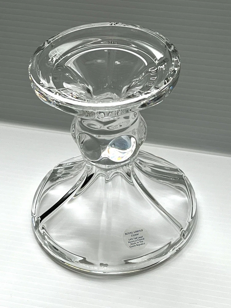Royal Limited 24% lead Crystal pedestal candle holder / display stand 6 inches tall - 5.5 dia base - 4” dia top Weight 2lbs 1oz In excellent display condition Unused for candle burning Original tag Made in Czech Republic See photos Thank you