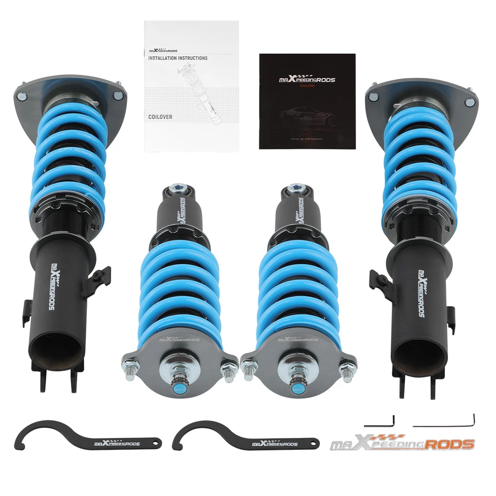 qxaac WHY CHOOSE US Fast Shipping International Shipping 30 Days Return Policy Secure Shopping Lowest Price Price match guarantee Manufacturer We know our products Easy Return Quick, Simple Guaranteed Fitment Always the correct part DESCRIPTION MaXpeedingrods COT6 lowering coilover, features 24 clicks adjustable rebound damping, independent ride height and spring tension settings, developed high viscosity index damping oil and 55CrSi steel cold-bent springs, adjustable camber plates and decent outlook to provide perfect balance between comfort and performance. This suspension system is ideal for daily driving and occasional, light track use. High quality components are adopted to ensure product durability and stability. Each application is fully test fitted and completely road tested to guarantee all our customers perfect performance and comfort expectations. Features 1. Lowered height adjustment from 1" - 3" which allow lower center of gravity and also add a more aggressive stance 2. Adjustable pre-load spring tension to reduce the shaking motion to a certain extent 3. High Viscosity Index damper oil ---make damping more stable and smooth in wide temperature range. 4. 24 Clicks of Rebound Adjustments -- This allows you the ability to perfectly dial in your coilovers system. For a nice comfortable driving, set damping to full soft. For more spirited driving, set it to 16 clicks. For occasional track days, set it to full stiff. 5. CNC machined Aluminum top mounts and lockers -- - excellent strength, and save weight 6. High Rigidity 55CrSi Steel Cold-bent Coil Springs --- more than 600,000 times continuously test to assure it's high tensile strength. 7. All inserts come with fitted long rubber boots --- To protect the damper more well and be durable. 8. Top Camber Plate with Pillow Ball Mount Provides More Precise Feel From Suspension And Steering. 9. Advanced Twin-Tube Technology ---provides excellent handling & control characteristics for most driving conditions 10. Anodized Shock Body With Anti-Corrosion Coating - Anodized Aluminum And Powder Coated Carbon Steel Parts 11. Test for the best ---Every parts were tested on our professional machine before assembled and tested by our professional racers on road. 12. Clean room assembled ---maintain higher level of accuracy and reliability. Application For Subaru Legacy 2005-2009 BL9 BP9 For Subaru Legacy TOURING WAGON 2003.05-2009.04 BP5 BPE Specification - Top mounts: Front pillow ball top mount with camber plate - Damping: 24 levels rebound damping adjustable - Adjustable camber plate: Front only - Spring rate Front: 7 kg/mm (392 lbs/in) - Spring rate Rear: 12 kg/mm (672 lbs/in) - Spring length Front: 200mm - Spring length Rear: 190mm - Adjustable height: lowering 1-3 inch - Coilover overall length Front: 460mm-550mm - Coilover overall length Rear: 400mm-450mm - Shock Type: Twin tube - Spring Preload: 7-10 mm - Color: Black body + blue spring Package included - Complete coilovers for 2 front and 2 rear - A pair of wrenches for height adjustment ★ 30-day Money Back & 24-Month Replacement Guarantee. Please feel free to contact us if there is any question. Height Adjustable Lowering Kit; 24 Clicks of Rebound Damping Force Adjustment; Independent Ride Height And Spring Tension Settings; High Rigidity 55CrSi Steel Cold-bent Springs; Anodized Shock Body With Anti-Corrosion Coating; Top Camber Plate with Pillow Ball Mount Provides More Precise Feel From Suspension And Steering; Full 1 Year Limited Warranty From Date Of Purchase. SHIPPING CA Domestic Shipping Notice - All items will be dispatched within 24hrs(Mon-Fri) Our carrier collects all the parcels at 4:30am PDT, any payment paid after 5:00am PDT will be shipped the next day at 4:30am PDT. If you paid Before Apr. 1st at 4:30am After Apr. 1st at 4:30am Item Shipped On Apr. 1st at 5:00am Apr. 2nd at 5:00am Est.Delivery Time Apr. 5th - Apr. 7th Apr. 6th - Apr. 8th If our estimated delivery time and eBay’s are contradictory,please refer to the standard delivery time of ours. Estimated Delivery Time From US Outside of US To US Service UPS or Fedex Ground DHL FedEx Est.Delivery Time 3-5 Business days 4-7 Business days ◆ Tracking number will be updated in 24 hours after shipment ◆ Please provide the following shipping information for your order Otherwise your shipment will be deferred. We are not responsible for any shipping lost caused by wrong shipping information Shipping rate If our ebay item listing doesn't show the shipping cost to your place.Please contact us to calculate the shipping fee for you. International Shipment For international shipment, we do not cover any import taxes or duties. Import tax is charged by the government, not us. Our item price and shipping cost do not include any import tax which will be charged by the shipping company when you got the parcel. Please be noted that is not the extra shipping fee. WARRANTY We aim to provide you the good buying experience, 30 days return policy is offered in our store. Please follow our return policy before you return any item(s): If you are unhappy with your purchase for any reason, you can return it to us in an un-used condition in the original packaging within 30 days of purchase and we'll give you a refund or exchange. The refund/Exchange will not include postage/eBay costs. Please note you MUST contact us to obtain a Return Authorization Number before returning any part. Any parcel without the Return Authorization Number will be rejected. If your item is faulty or was incorrect, you must contact our sales representative before returning the parcel and we will endeavour to solve the problem effectively. Video or picture is required to show the item condition before we issue the Return Authorization Number. Important notice 1. Any returned item(s) without Return authorization number will be rejected . 2. Please return your item(s) in original packaging and ensure that all packages are securely wrapped . 3. We will not accept 