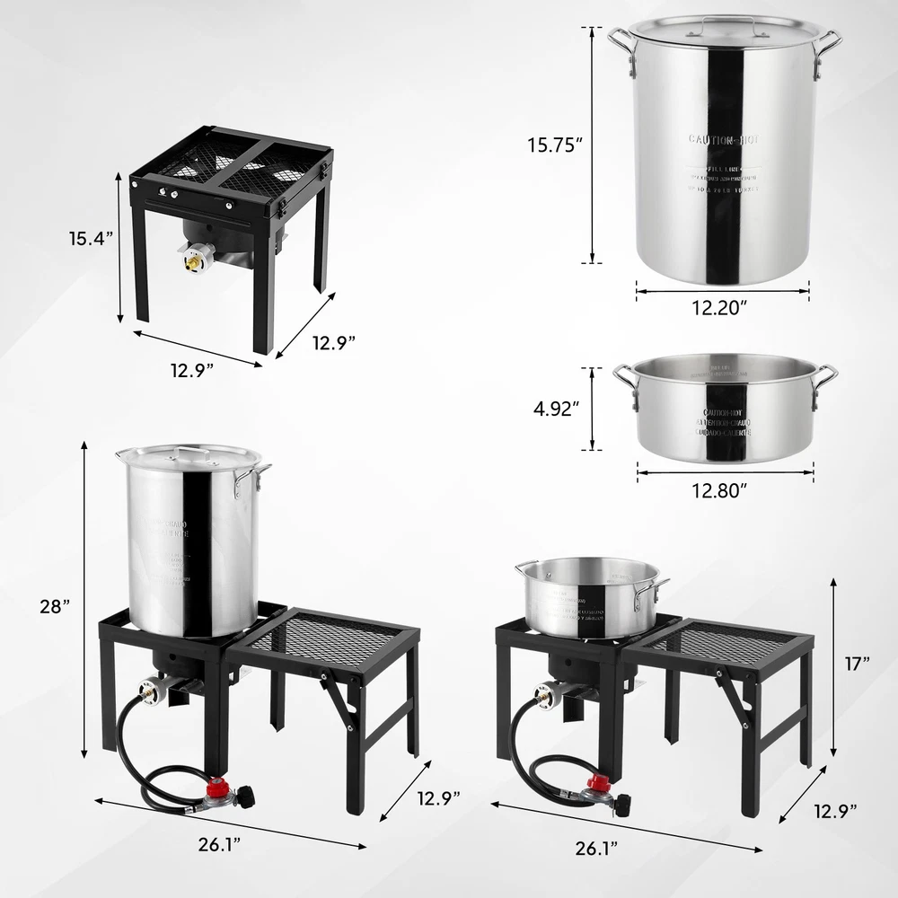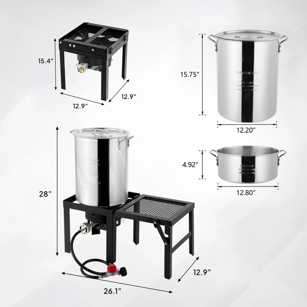 2/4 PCS 30QT Deep 54,000BTU Turkey Fryer Outdoor Gas Propane Pot Burner Cooker