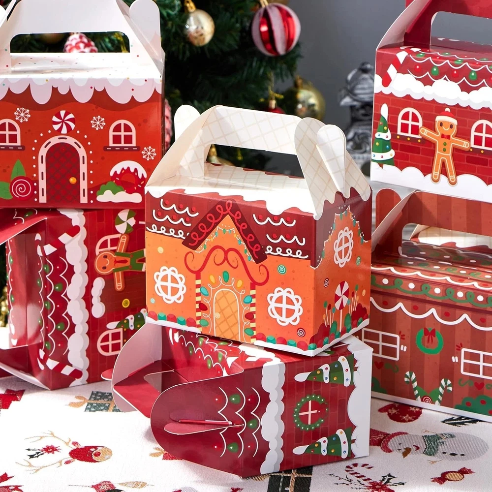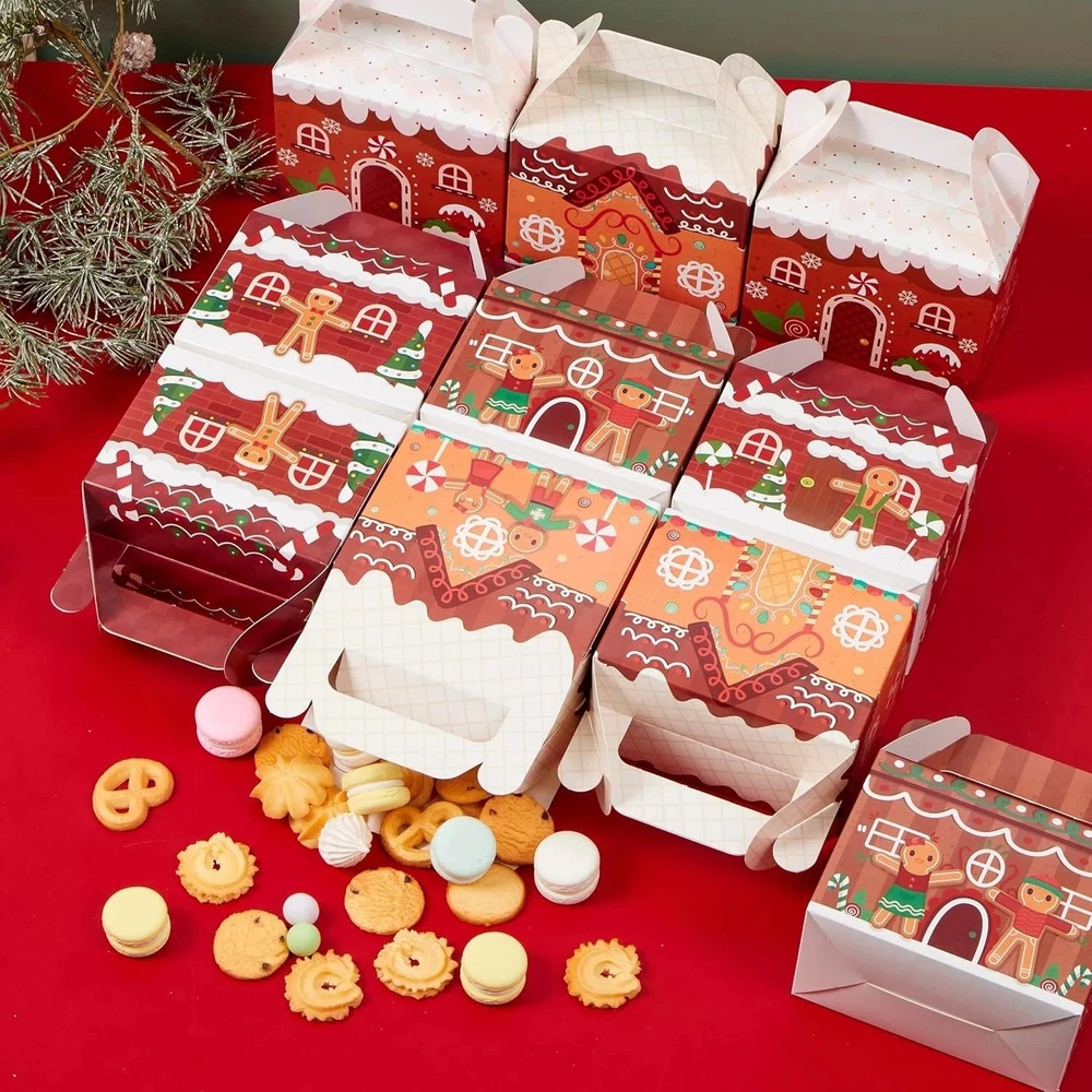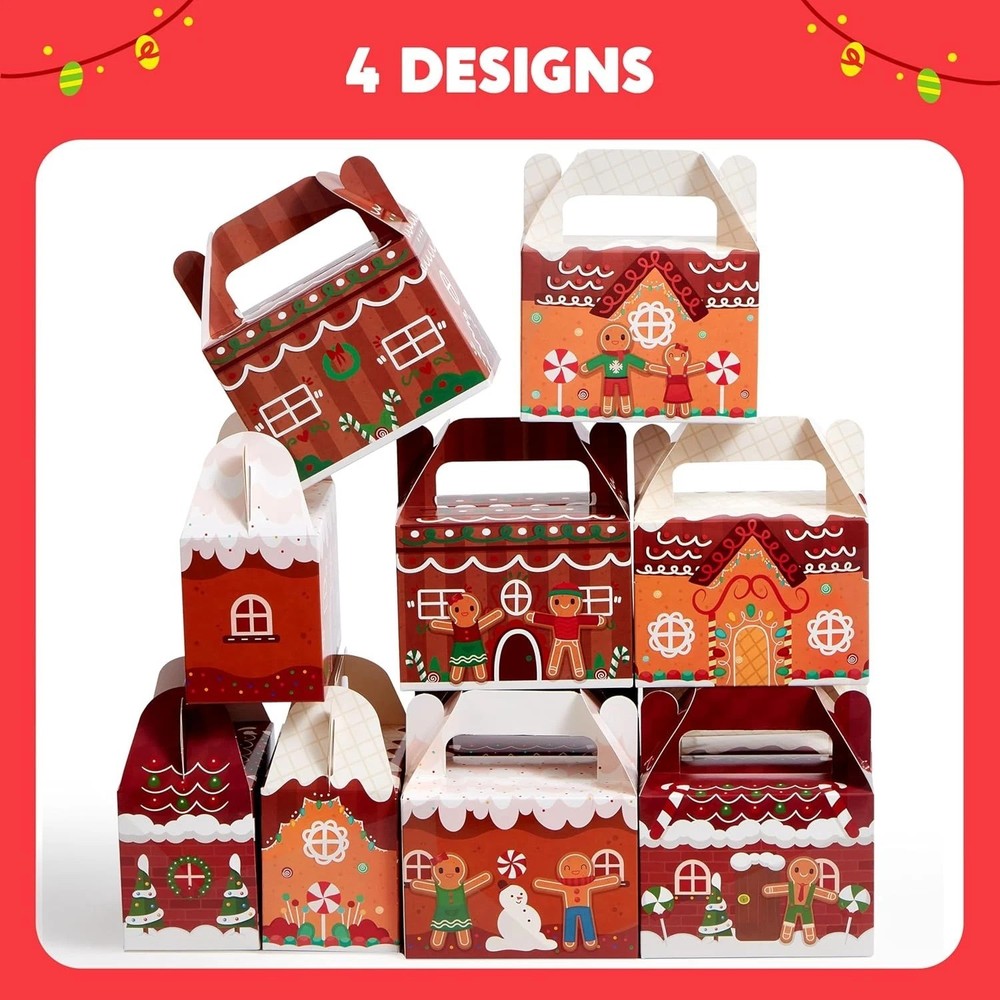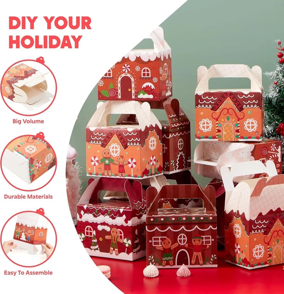 24 PCS Christmas Cookie Boxes, Christmas 3D House Cardboard Treat Boxes for Holiday Xmas Goody Gift, Goodie Paper Boxes, School Classroom Party Favor Supplies, Candy Treat Value Package. Our 3D Christmas House Cardboard Treat Boxes Set with Lids includes 24 pieces of cookie boxes in 4 designs. Each box measures 6 x 6 x 3 ½ inches, offering ample space for your festive treats, making them ideal for gift giving and Christmas parties. Unique Design. These 3D Christmas House Cardboard Treat Boxes have 4 different Christmas festive patterns, which will go well with the Xmas goody gift you prepare for your friends and family. Premium Quality. Crafted from durable paper, these holiday cookie boxes feature a clear window to showcase your delicious treats while keeping them fresh and protected. The window design allows for easy viewing of the contents, making these treat boxes with windows perfect for showcasing your beautifully decorated Christmas cookies and treats. Premium Quality. These Xmas Treat Boxes are super durable and made from extra durable, paperboard material that will keep your pastry safely intact. Easy to Use. Simple design allows for easy assembly, saving you time during the busy holiday season. Compact size and lids make them suitable for storing cookies, candies, or small trinkets. Delivery within 3-4 days. Shipping as fast as possible Please contact if you have a question! HAVE A NICE SHOPPING!