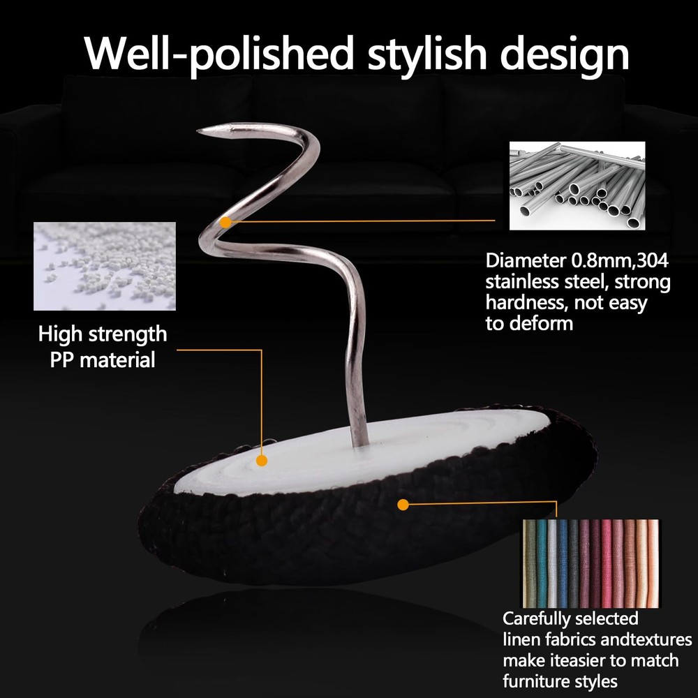 Bed Skirt Pin Twist Pin 24 Create a tidy Look: Bed skirt pins keep your bed skirt or dust ruffle from moving around, so you can keep a clean and tidy look Secure Hold: Our fabric covered buttons will hold fabric secure to furniture without damaging fabric Wide Usage: The twist pins suit for upholstery, arms covers, slipcovers and doilies, also can hold the bed skirt to the mattress Easy to Use: The spiral design is easily twisted through fabric with no special tools required. The pins are easy to unscrew if they need to be removed Package: Each pack comes with 24 pieces twist pins upholstery with 0.8 inches fabric covered heads