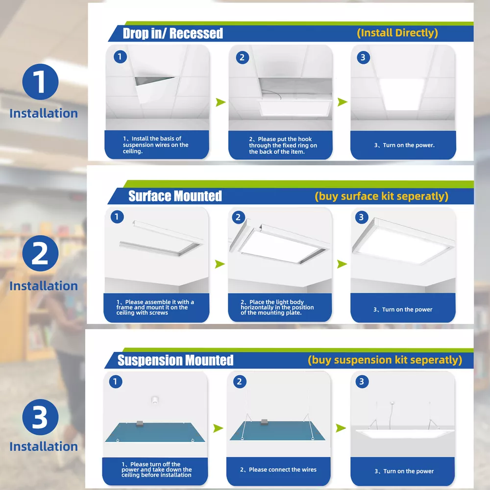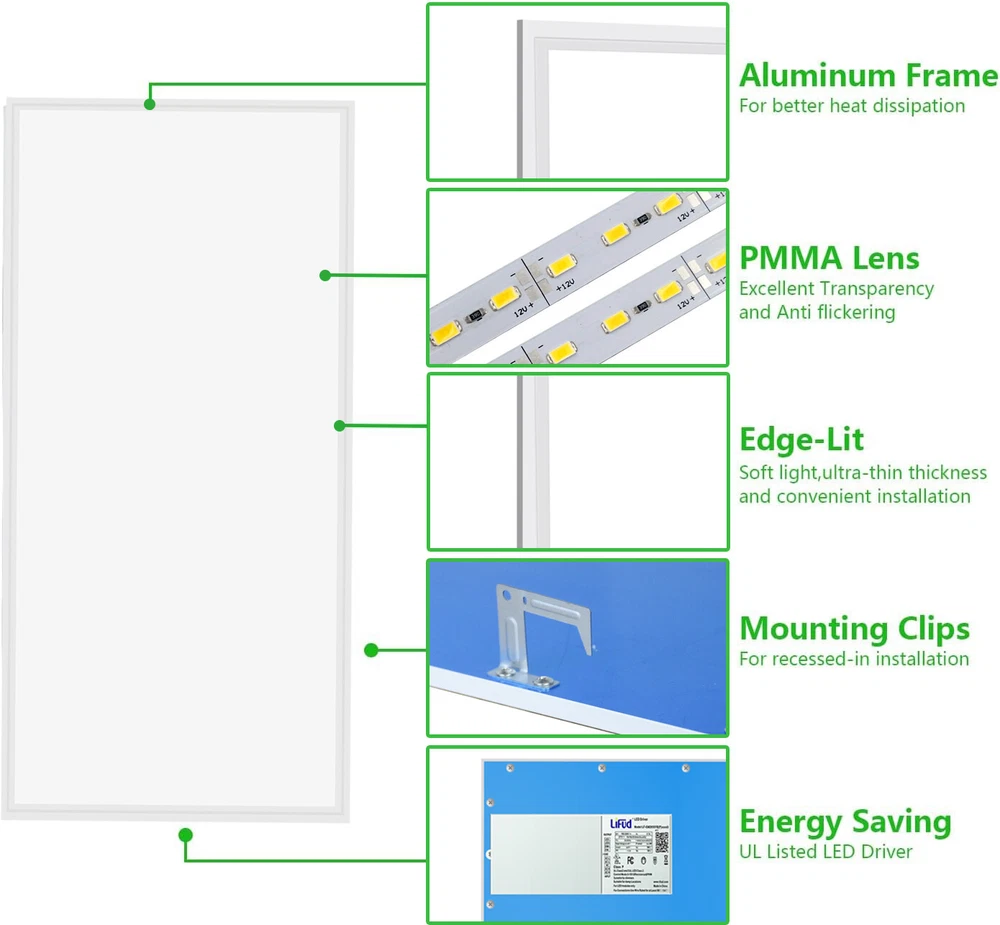 24 Pack 2x4 FT 75W LED Flat Panel Troffer Light,5000K Drop Ceiling Office Lights 24 Pack 2x4 FT 75W LED Flat Panel Troffer Light,5000K Drop Ceiling Office Lights Same day send from GA/CA/TX warehouse. More than 5000pcs stock in local warheouse,welcome to inquire best price for bulks. Factory Price!!! Specifications: • Input Voltage: 110-277V AC 50/60Hz • Power Consumption: 75W • Light Colour: COOL White 5000K White Trim • Brightness: 8400 LUMENS • Rated Lifespan: 50000 Hours • Power Factor: >0.9 • Material: PMMA And Aluminium Alloy • Beam Angle: 120º • Certification: CE, RoHS • Operating Temperature: -10ºC - +40ºC • 5 Years Manufacturer Warranty • LED PANEL DRIVER IS INCLUDED Product Features of 2x4 Troffer Light Fixture ETL listed The ETL listed ensures that the product has been tested for safety and performance ,ensuring that it meets safety and quality standards for use in commercial and residential settings. High Brightness LED Chips Ensuring bright and clear illumination. High-brightness LED panel that provides an even, bright, soft, natural light. NO Flicker and Eye Protection . CRI 80+ CRI 80 provides a higher level of color accuracy and vibrancy compared to lower CRI ratings. This means that colors appear more vivid and true to life , making it ideal for applications where color accuracy is critical. Aluminum Frame Aluminum housing is made of high-quality aluminum material that is durable, lightweight. Additionally, it helps to dissipate heat generated by the panel light. Good Quality&ETL Listed --- With a color temperature of 5000K and a lumen of 8400 lumens, powerful and efficient light-smoothing optics provide superior light and energy year after year.The panel illuminates immediately and there is no flicker,hum or black dot throughout the life of the luminaire.Our panel lights have ETL Listed certification.our size of 23.75''*47.75'' panel light features a recessed edge-lit design, ETL listed for safe and reliable operation. How Much Will You Save? Low Heat --- These edge-lit LED panel lights run cool,helping to keep the air conditioner low while providing 50% lumens compared to traditional fluorescent tubes. LED Drop Ceiling Light 0-10V Dimmable 2x4 Recessed Edge-Lit Troffer Fixture 0%-100% Smooth Dimming Multi-Light Control With the capability to control up to 10 lights simultaneously, this 2x4 LED flat panel light offers the convenience of centralized light control in multiple areas. Long Lifespan --- Designed for use at 110-277VAC,with a rugged aluminum frame and white finish,this LED panel light has a design life five times longer than a fluorescent panel. Great Replace Fluorescent Light in Drop Ceilings 2x4 LED Drop Ceiling Light Fixture Easy Installation: 2X4 LED troffer adopts an ultra-thin design, a thickness of 0.43 inches, you can quickly install it by yourself. Three mounting options -recessed in/surface mounted/suspended - to suit your different needs. (Suspension and surface mount kits need to be purchased separately). Work from 110-277V AC. Warranty&Service --- We offer a three-year warranty and good after-sales service except intentionally damaged.if you have any questions about our products,please contact us in time. Wide Application Payment Delivery details Return About us Feedback Payment Paypal only accepted Payment Instructions - You will be notified with an email about your purchase with the payment information. For Buy It Now item, an - immediate paymentis required (best offer items excluded). For Auction items, Please pay within 7 days, or eBay will open unpaid case for it. For order cancellation, please inform us within 7 days. Delivery details US warehouse,3-5 working days delivery. Germany warehouse,2-3 working days delivery. Australia warehouse,3-5 working days delivery. Should be ship from our factory in China if order from other country.4-5 working days delivery of effective shipping way with UPS,Fedex,DHL and USPS ect We do not accept P.O. BOXES - PLEASE PROVIDE A PHYSICAL ADDRESS Return 30-days return policy. Please contact us if have any question with your order , we accept 30days return and 24/7 customer service. About us High quality products,Excellent after sale service, Fast shipping and Save more. All product based on high power.We never stop doing improvement on our products and testing the functions. Safety Matters--High quality materials, Heatproof Tube, NO risk to catch fire. Adopting isolated power supply, Safe & easy to maintain and keeps long life span,good quality with affordable price Warranty & Customer Service-One year warranty, 30 days return. US/UK/DE warehouse and repair center are available. warranty is guaranteed. I am sure you will happy with our high quality and reasonable price products! Feedback 1.We reply on our reputation and customer satisfaction to succeed. Therefore,your feedback is extremely important to us.Please leave good feedback to us if you are satisfied with our goods and service. 2.We care about valued customers,and will always do our best to help you. 3.Please give us an opportunity to reserve any problem.We understand the concerns and frustrations you may have,and will do our best to solve the issues. 4.Please email us before leaving any negative feedback or opening any dispute on the site.We will help you solve the problem.